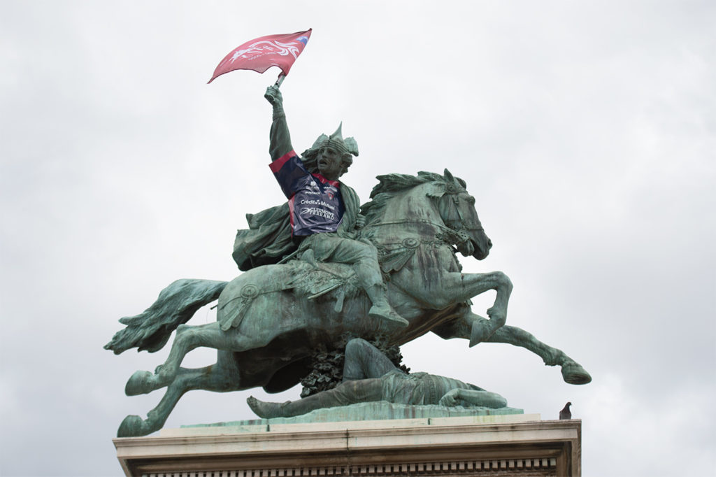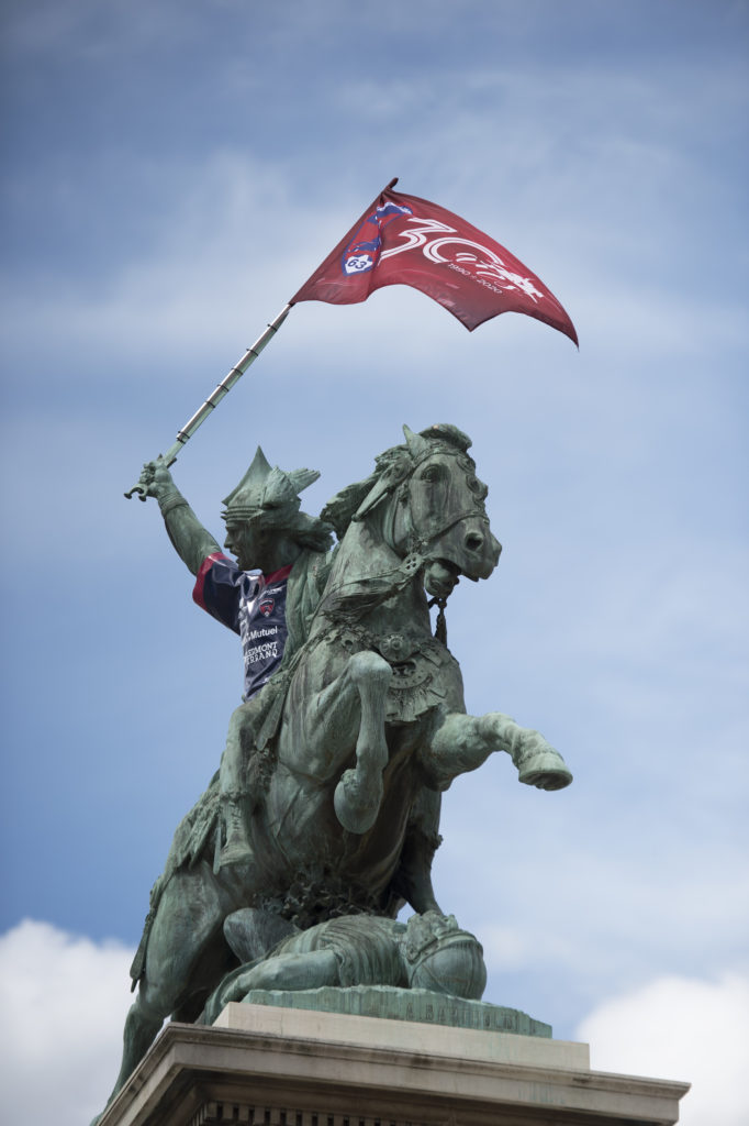 Au cœur de la ville, dans le cœur des Clermontois ! Symbole de notre région, de notre ville et de notre club, emblème de notre logo, Vercingétorix revêt avec fierté nos couleurs rouge et bleu depuis vendredi Place de Jaude grâce à ce maillot collector spécialement conçu pour fêter le 30ème anniversaire du Clermont Foot 63.