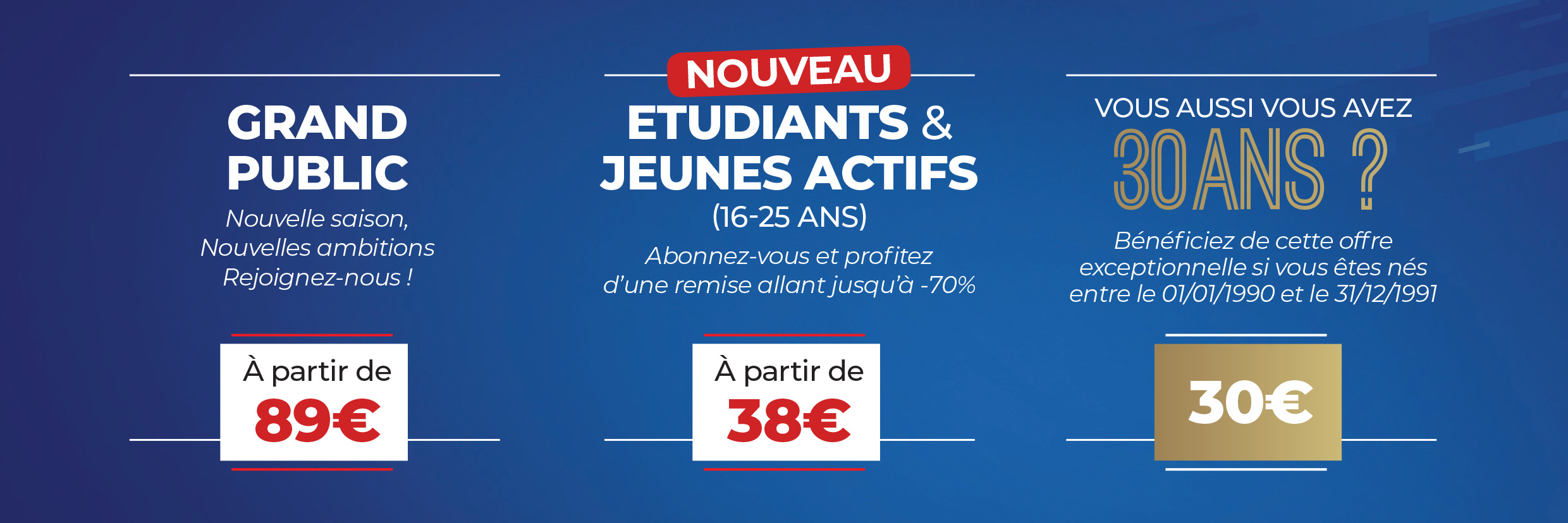 Par avance, nous nous réjouissons de vivre cette saison sportive et festive à vos cotés et de vous accueillir à nouveau au stade Gabriel-Montpied ! Profitez de nos nouvelles offres (30 ans = 30 €, étudiants et jeunes 16 à 25 ans à partir de 38€, grand public à partir de 89€) pour soutenir votre équipe tout au long de la saison 2020/2021 !