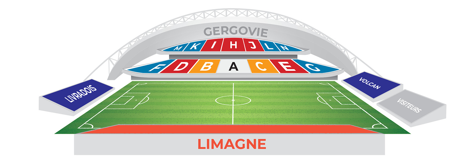 Tribune Limagne : nouvelle tribune tubulaire de 3 000 places, couverte, « à l’anglaise », proche de la ligne de touche et s’étirant sur toute la longueur du terrain. Placement numéroté.