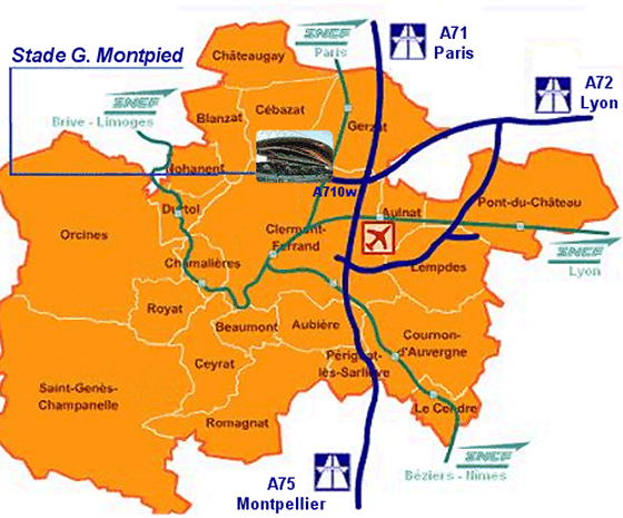 | > Via Autoroute A71 Direction Orléans, Clermont-Fd Prendre sortie n°15: Clermont Nord, Limoges | > Via Autoroute A72 Direction Clermont-Fd Continuer sur A710/E70, dir. Clermont Nord |