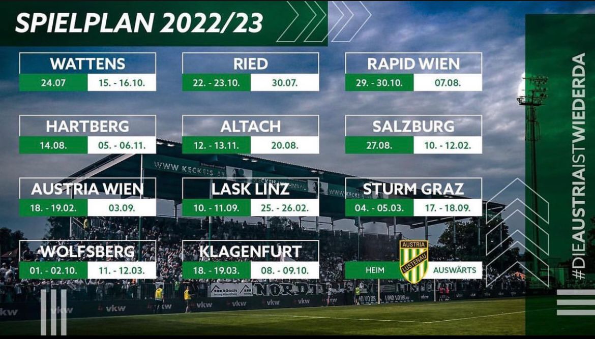 Champion de D2 autrichienne en 2021-2022 pour la deuxième fois de son histoire, Austria Lustenau démarre sa saison dimanche 24 juillet à 17h en recevant au Reichhofstadion le WSG Tirol, le club de la ville de Wattens.