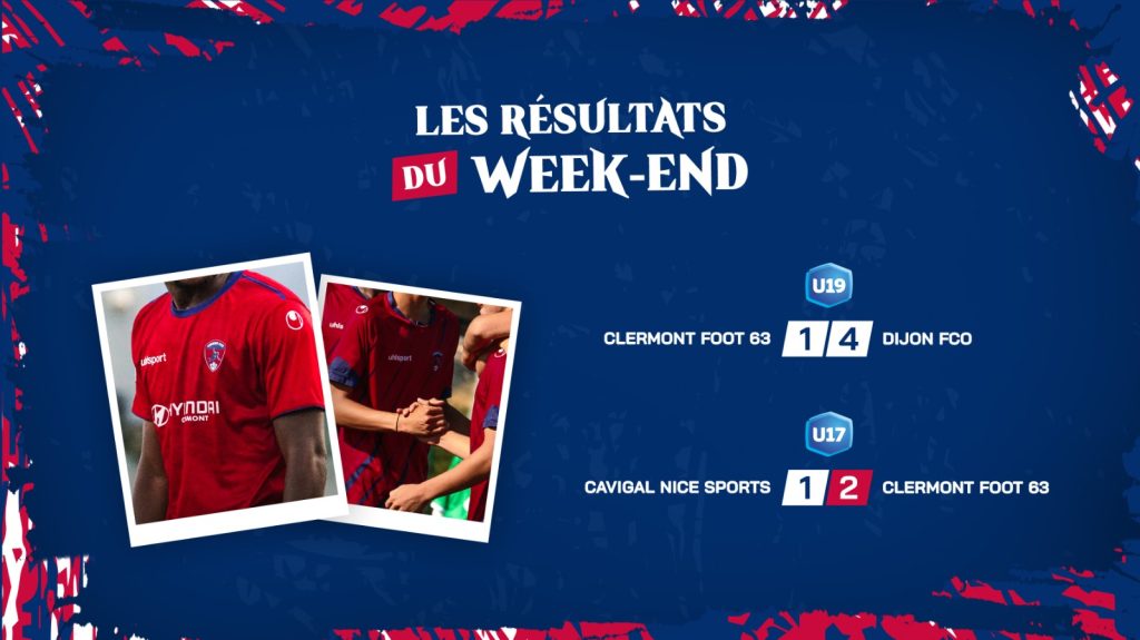 CF63. Joan RAYNAUD – Mathis DANDO – Noah SAMPAIO – Malo BARTOLOMEU – Leny KONE – Matteo GUERREIRO – Adam MAHNAOUI – Ihlane ALI ( Uchael FRANCHAR BOROBONA, 68e ) – Florian MEKUE N’DIAYE – Ilyane ZABOUB – Yazid RAHMAOUI ( Malcolm TUETE MONKAM, 82e )