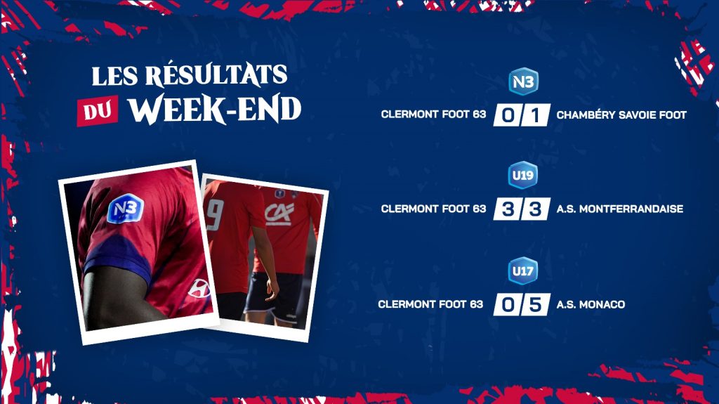 CF63. Théo RAMOUSSE – Mathis COHADE – Maxence LEROY ( Yacine DEHLI, 46e ) – Gabin MAZEYRAT – Robin PAGES – Ilan IHADDADENE ( Enzo TRIBOUT, 72e ) – Enzo CANTERO – Rayane NASRI – Colas CHASTANG – El Hadj MORY KONE ( Tom AUVRE, 61e ) – Marouane ADMAR ( Camil SELLAMI, 72e ) AS Montferrandaise. Tony CARLIER – Mathéo MICHAUD – Hugo SIMON ( Kami MECHIN, 90e ) – Hugo MARQUES – Enzo MARTINON -Thibaut GAMEIRO ( Arjon LIKA, 79e ) – Ryad LAAKLI ( Loris MONNEY, 67e ) – Adrien VALLAS – Julian PARRO – Georges NOUGA ( Nolan PINTO CARDOSO, 79e ) – Ousmane BARRY