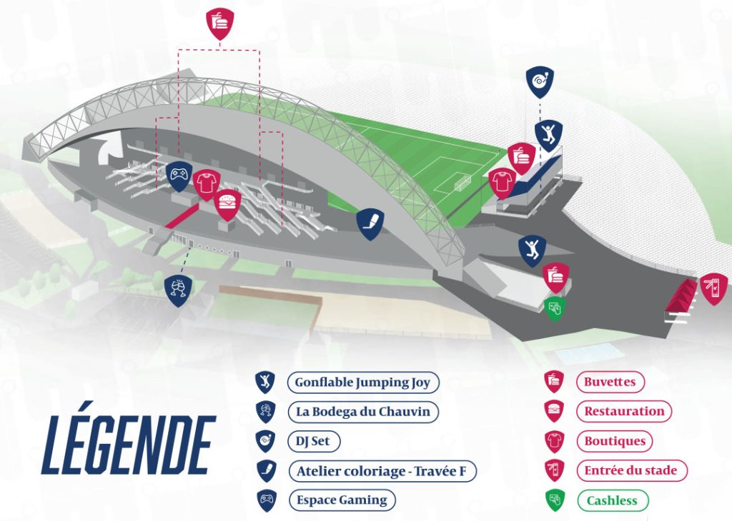 Dès 18h30, profitez des animations au stade : DJ set, atelier Torix, jeux gonflables Jumping Joy, atelier coloriage (travée F) ou encore Espace Gaming… Il y en aura pour tous les goûts dans la Fan Zone !