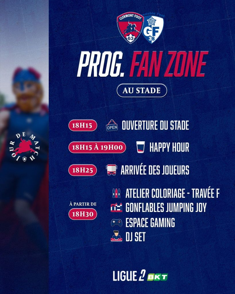 Vendredi, c’est jour de match au Stade Gabriel-Montpied ! Retrouvez ici toutes les infos essentielles pour préparer votre venue au stade. Rendez-vous dès 18h15 pour profiter de toutes nos animations !