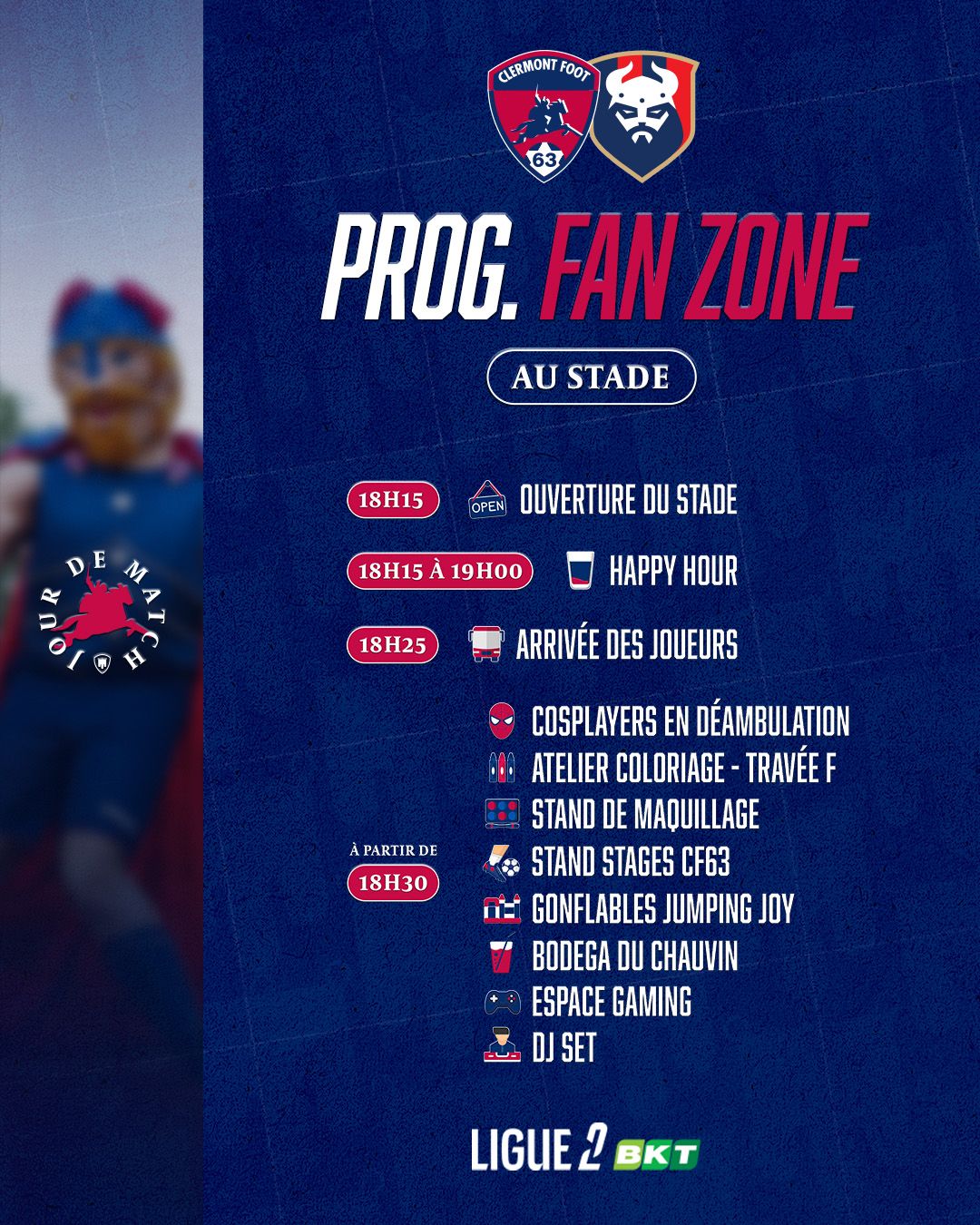 Le stade Gabriel-Montpied ouvira ses portes à 18h15, ne manquez pas l’arrivée du bus des joueurs derrière la tribune Gergovie à 18h20. DJ set, atelier Torix ou encore Espace Gaming… Il y en aura pour tous les goûts dans la Fan Zone !