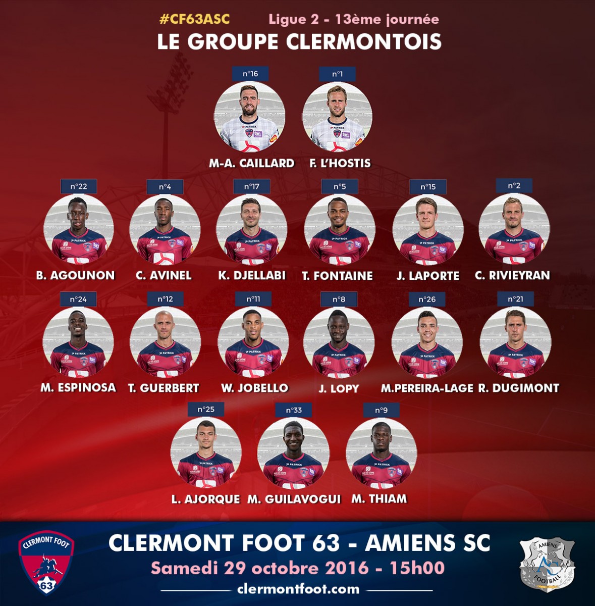 Trois jours après sa confrontation face à l'OM en Coupe de la Ligue, le Clermont Foot 63 enchaîne par la réception d'Amiens, deuxième du championnat, pour le compte de la 13ème journée. Coup d'envoi ce samedi à 15h00 au stade Gabriel-Montpied.