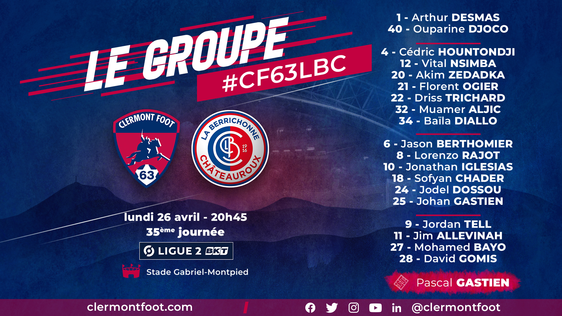 Pascal Gastien a convoqué un groupe de 19 joueurs pour la réception de Châteauroux, demain, en match décalé de la 35ème journée !