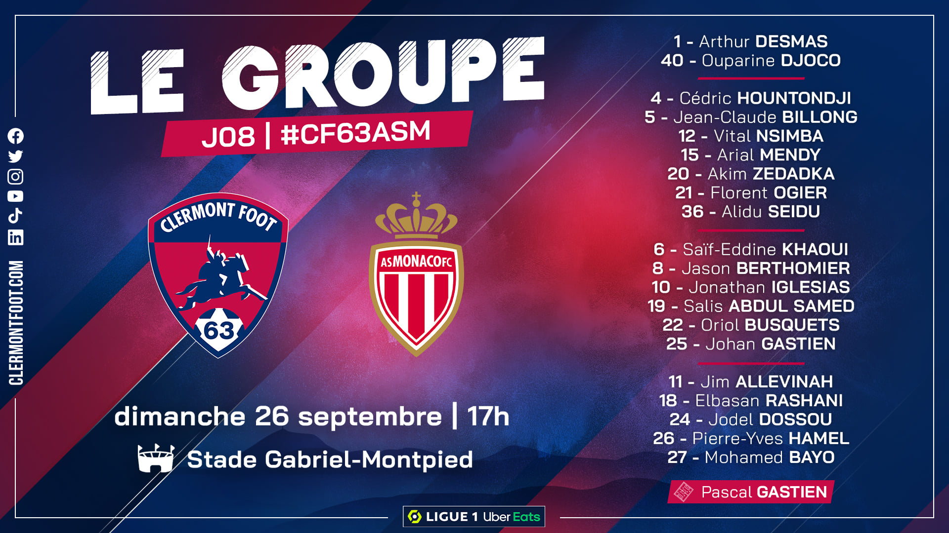 Tout juste revenus de Rennes, les Clermontois clôturent cette semaine chargée en préparant la 8ème journée de championnat. À cette occasion, ils reçoivent l’AS Monaco, actuel 13ème de Ligue 1 Uber Eats.