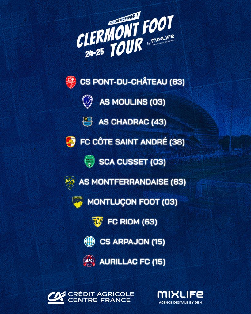 Nous vous donnons rendez-vous le 31 mai 2025 ! Venez nombreux soutenir ces jeunes talents et vivre une expérience unique au cœur du Clermont Foot Tour by Mixlife !
