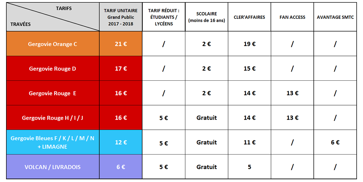 Venez en bus ou en tramway (arrêt Stade Gabriel-Montpied) et bénéficiez d'une place à 6 € au lieu de 12 € en Tribune Gergovie (travées F, G, K, L, M et N) et en Tribune Limagne. Ces billets réduits sont à retirer exclusivement les soirs de match aux guichets du stade Gabriel-Montpied. Sur présentation d'un justificatif de transport.
