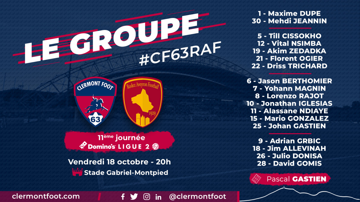 Découvrez le groupe de 18 joueurs retenus par Pascal Gastien pour défier Rodez ce vendredi (20h) au stade Gabriel-Montpied.