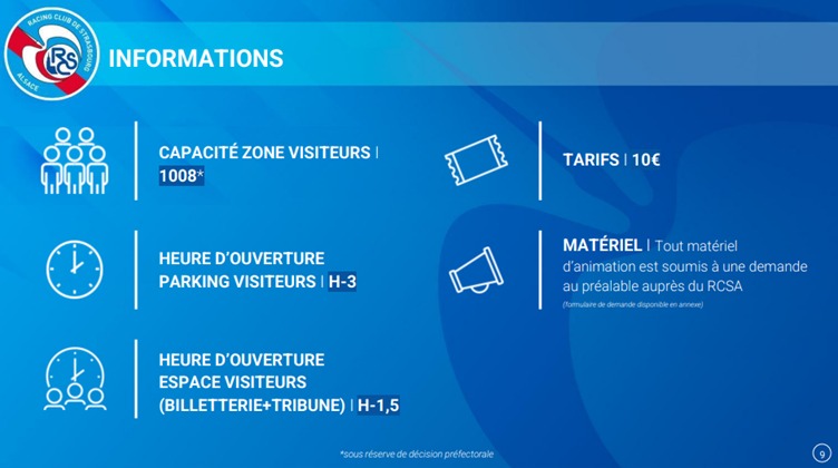 Afin que cette rencontre se déroule dans les meilleures conditions, merci de remplir un questionnaire en amont pour que nous puissions déclarer votre présence au Racing Club de Strasbourg en cliquant ici.