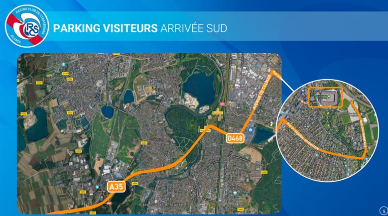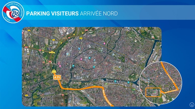 Lors de votre arrivée à Strasbourg, voici l’itinéraire à suivre afin de se rendre au parking visiteur (Pvisit) dont la capacité est d’environ 80 voitures :