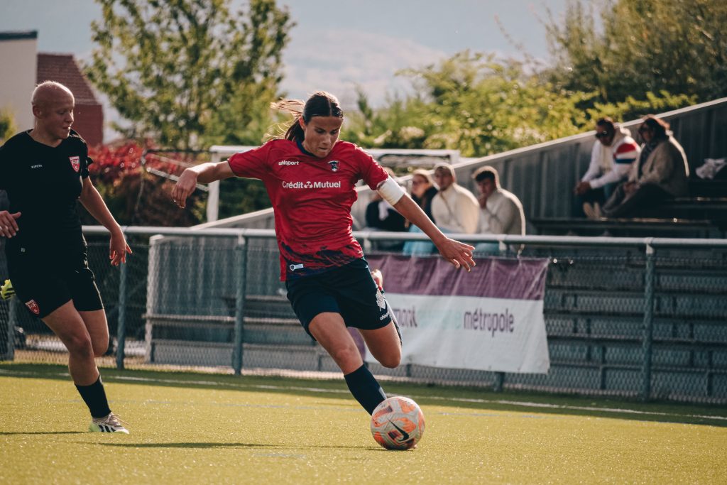 Après un début de match compliqué, la première occasion est à mettre à l’actif de notre adversaire du jour, bien arrêtée par Léa Robin, de retour de blessure. La deuxième partie de première mi-temps est à sens unique avec 3 grosses occasions de notre part (un poteau et une barre) mais nous rentrons aux vestiaires sur un score de parité, 0-0 à la pause.