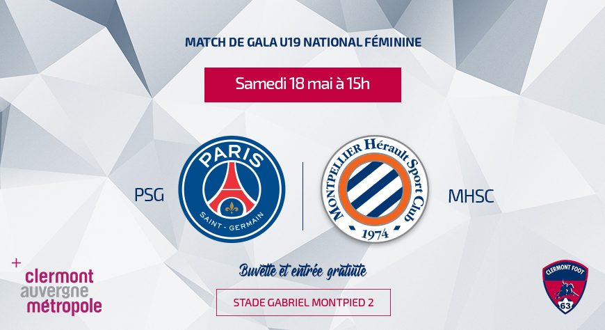 Avant le match des clermontoises contre Valence le dimanche, une rencontre de football féminin clôturera cet évênement le samedi 18 mai sur le terrain synthétique du stade Gabriel Montpied à 15h entre les U19 du PSG et MONTPELLIER, deux des trois meilleures équipes de France. Ce match amical préparera les parisiennes pour leur finale nationale du championnat de France U19 contre l’Olympique Lyonnais qui aura lieu la semaine suivante.