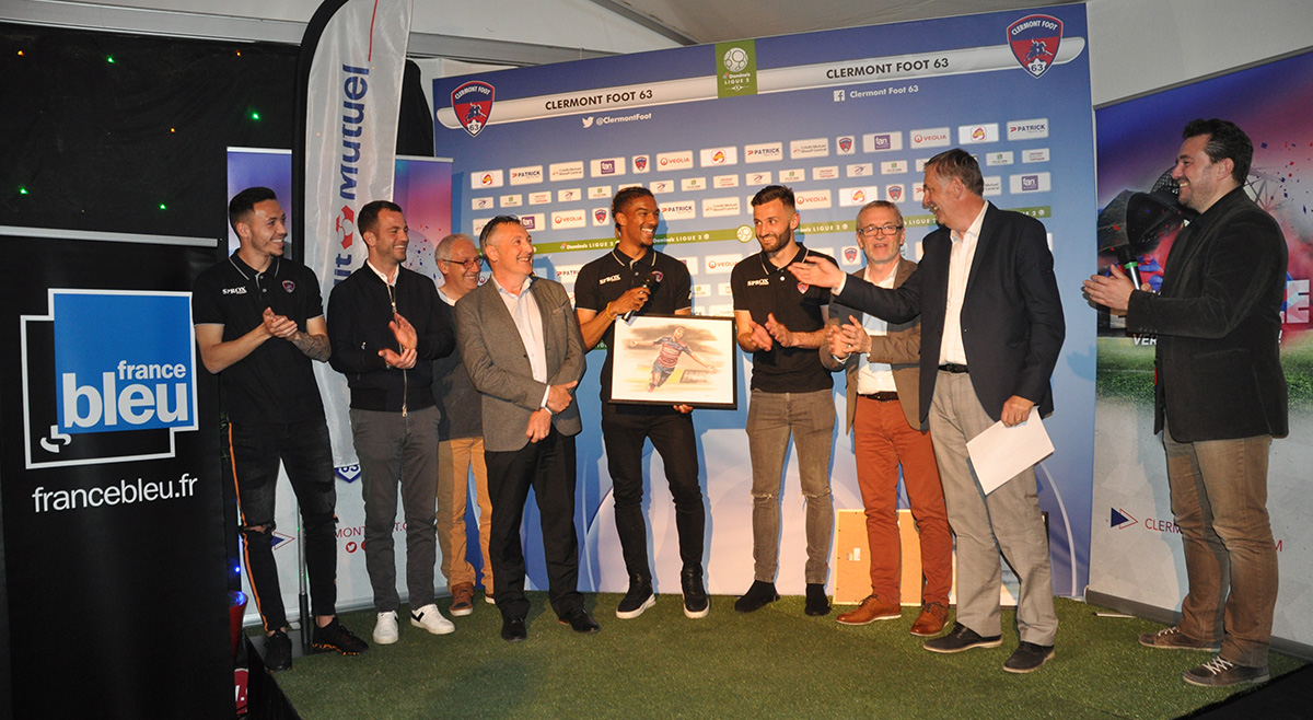 Florian a reçu son trophée des mains de Serge Masseboeuf, responsable développement du Crédit Mutuel Massif Central, et de Lionel Lepage, directeur de France Bleu Pays d’Auvergne, en présence d’Ahmet Schaefer et de Pascal Gastien. Avec 150 points, l’attaquant clermontois a dominé le classement général, devançant Franck Honorat (85 points), Mathias Pereira Lage (65 points) et Jonathan Iglesias (60 points).