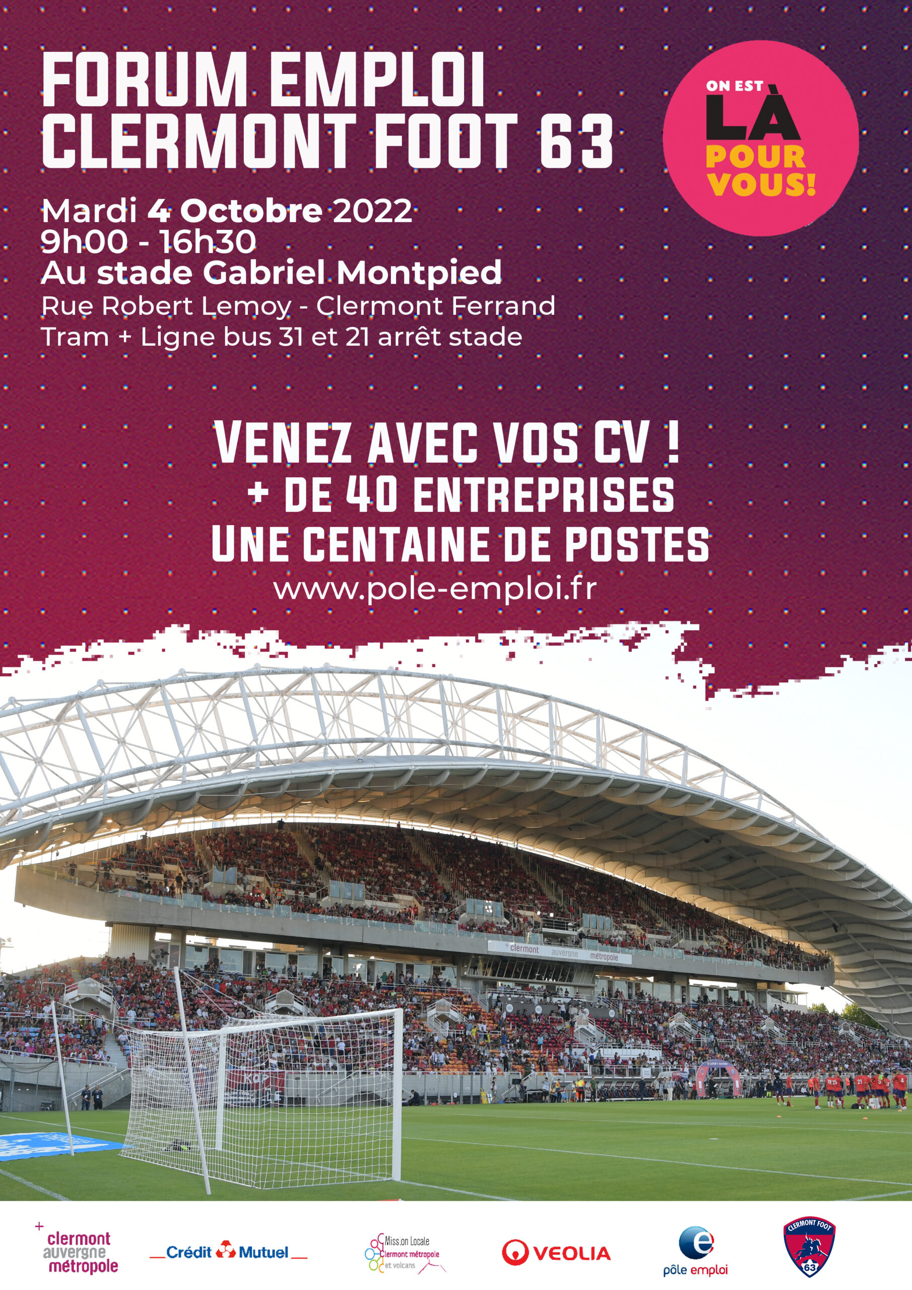 Le Clermont Foot 63 s’associe à Pôle Emploi et à la Mission Locale Clermont-Métropole et Volcans et organise la 2ème édition du Forum de l’emploi.