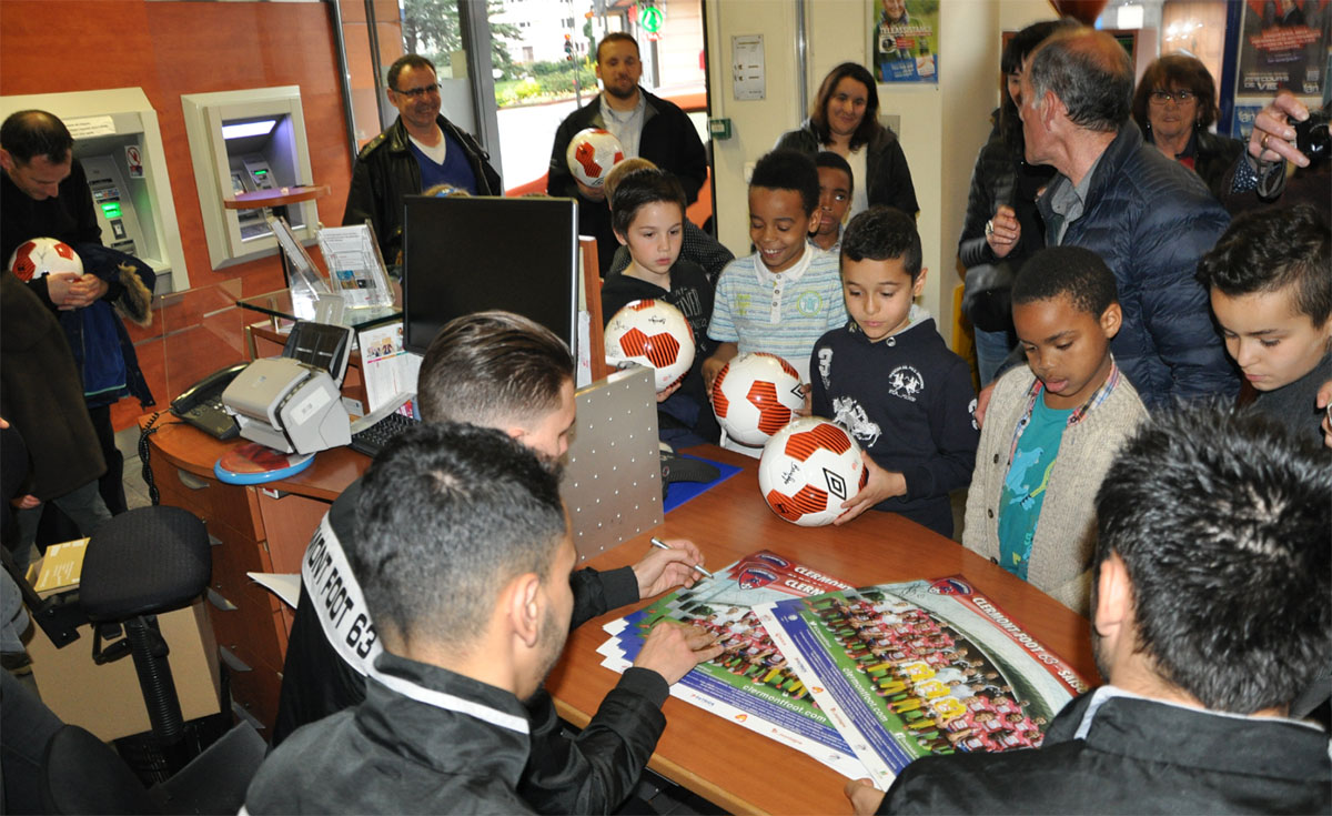Adrien Hunou, Farid Boulaya et Gaëtan Laborde en dédicaces pour les jeunes U9 du FC Chamalières