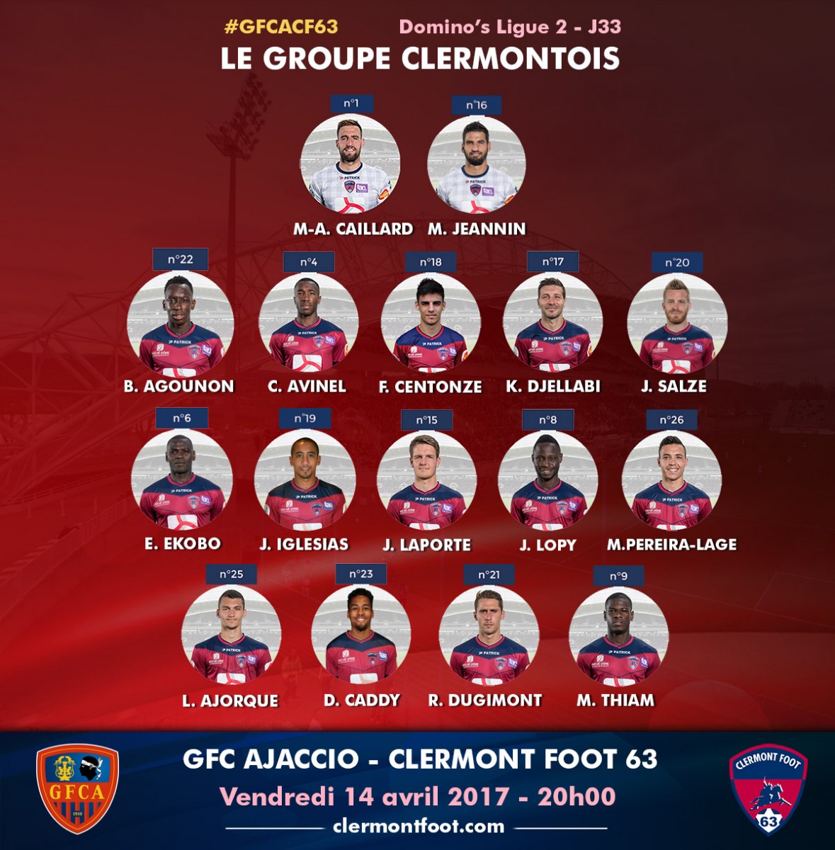 Le Clermont Foot 63 se rend en Corse ce vendredi pour défier le GFC Ajaccio. Pour cette rencontre, Jacques Salze fait son retour dans le groupe alors que Thomas Fontaine est suspendu. Découvrez les 16 joueurs retenus par Corinne Diacre.