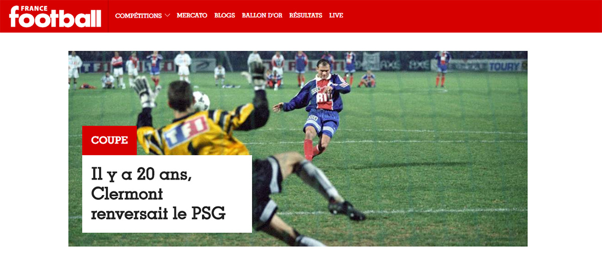 Le site de France Football consacre également sa Une aujourd'hui à cet exploit. Découvrez le témoignage d'Olivier Enjolras en cliquant ici.