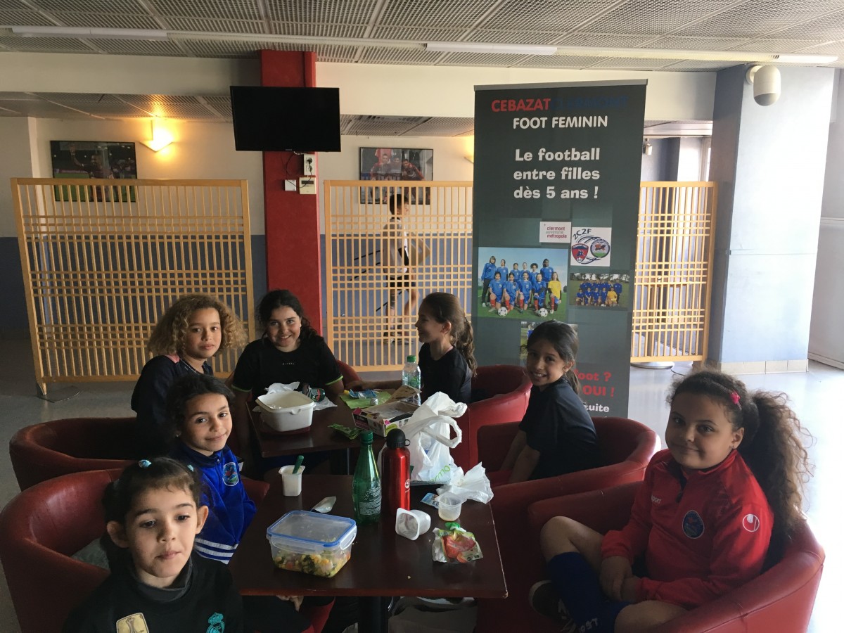 Après un repas partagé dans la salle Chauvin sur la thématique du « repas équilibré du/de la sportive, les jeunes footballeuses ont visité le stade et sont repartis avec les posters des sections masculines et féminines.