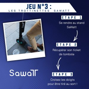 Les trottinettes électriques sont devenues l’alternative adéquate pour les déplacements quotidiens, permettant d’associer gain de temps et éco-responsabilité. La boutique de notre ambassadeur SaWatt située à Clermont-Ferrand délocalisera ses équipes afin de faire découvrir au public son offre de location, de vente, mais aussi de réparation, et pour chaque visiteur se rendant sur le stand SaWatt, un ticket de tombola lui sera remis afin de peut-être remporter… Une trottinette électrique.