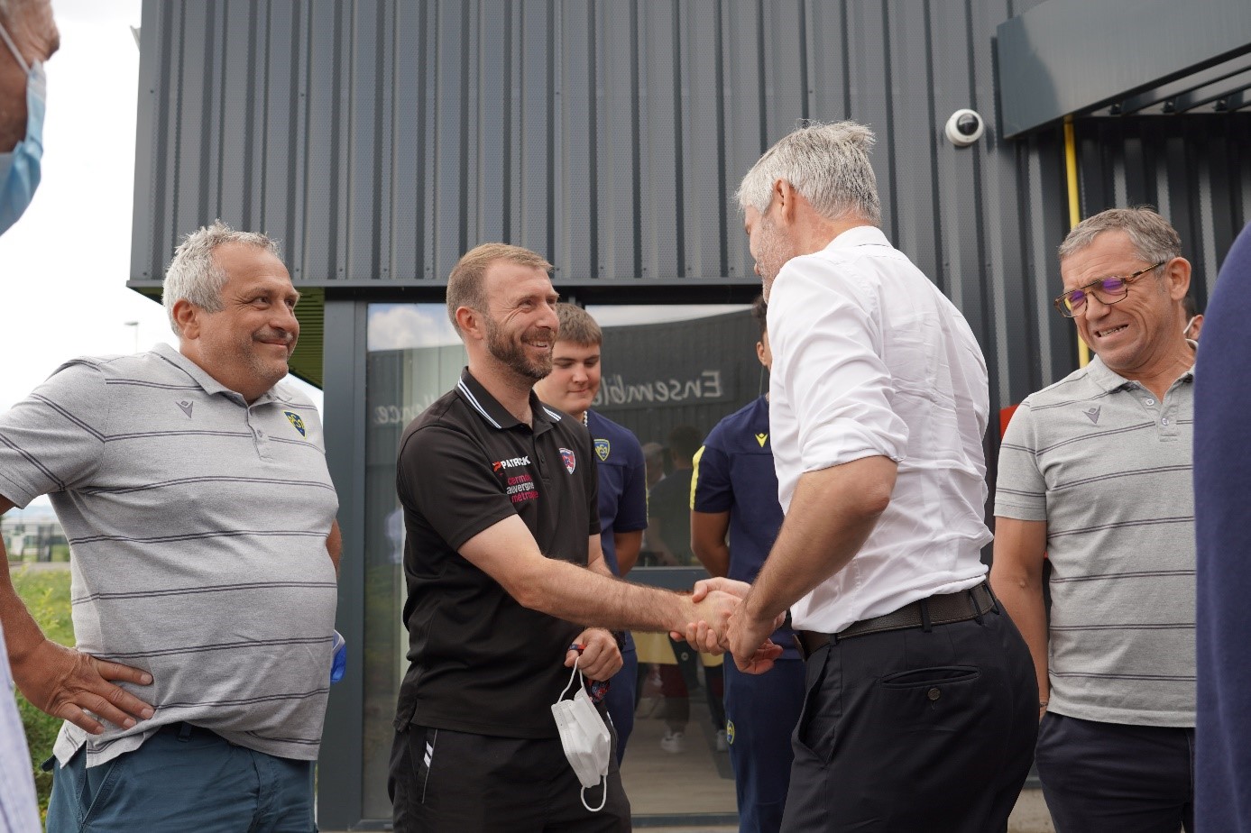 Accueilli par Patrick Sicard, Président de l’Association Clermont Foot 63 et Pascal Thibault, Président d’ASM Omnisports, le Président de Région et son Vice-Président Brice Hortefeux, ont pu visiter les installations du Centre (salle de performance, terrains) tout en échangeant avec les membres des staffs sportifs respectifs et notamment Sébastien Mazeyrat (CF63) et Bertrand Rioux (ASM).
