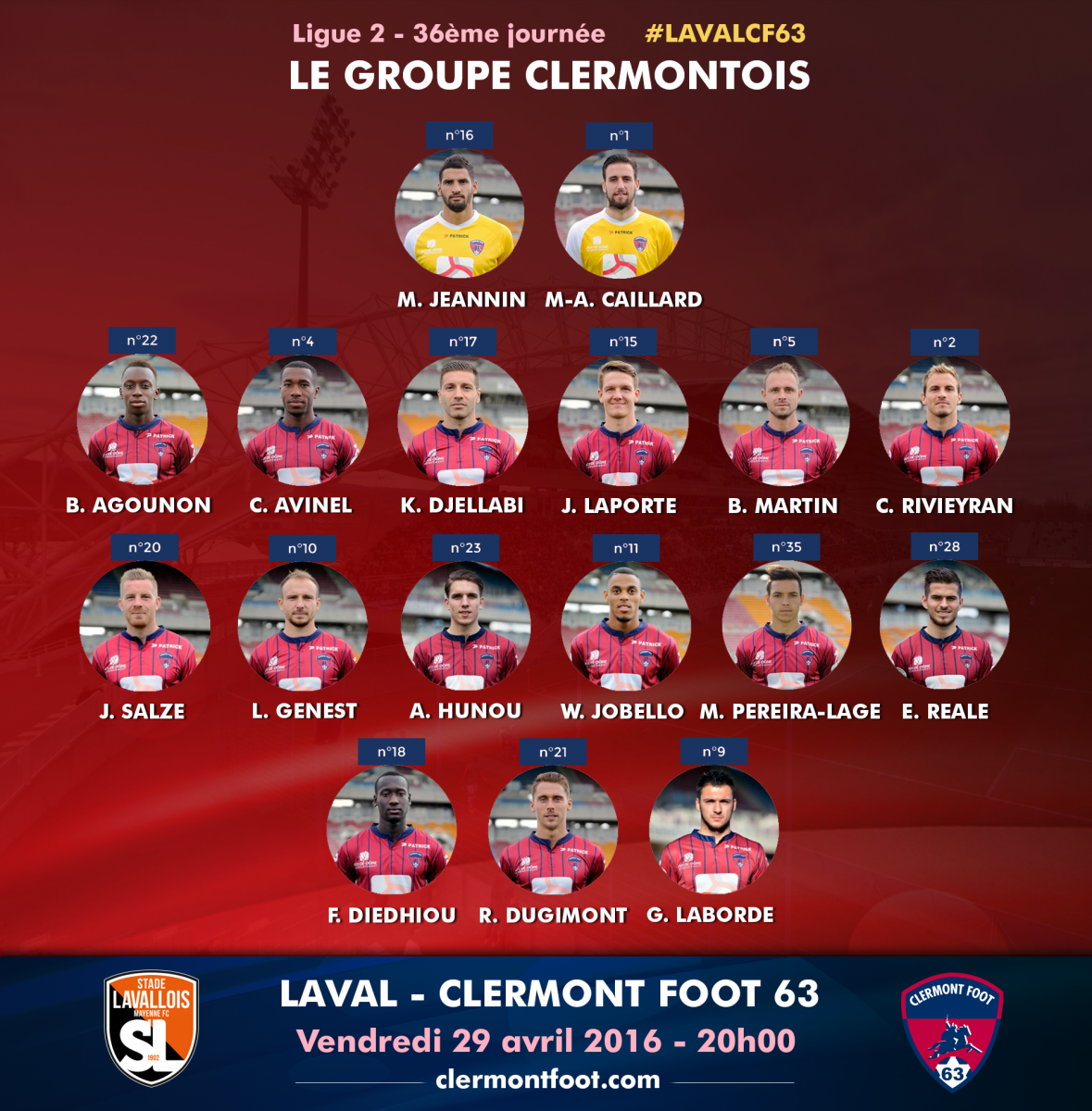 Le Clermont Foot se déplace à Laval ce vendredi soir pour le compte de la 36ème journée de Ligue 2. Corinne Diacre a retenu un groupe de 17 joueurs pour cette rencontre.