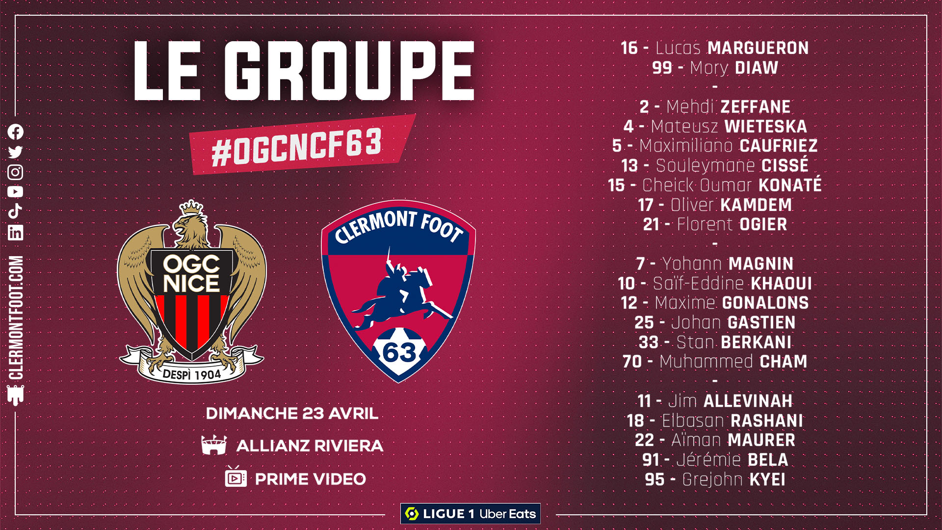 À sept journées du terme du championnat de Ligue 1 Uber Eats, le Clermont Foot 63 s’est offert le luxe d’avoir à jouer une fin de saison sans pression. Quasiment assurés de maintien avec leurs 43 points au compteur, les hommes de Pascal Gastien se déplacent donc sur la pelouse de l’OGC Nice avec l’envie de continuer à surfer sur leur bonne dynamique des dernières semaines. D’autant que face à eux, ils auront une formation niçoise qui a été éliminée par le FC Bâle en Europa League Conférence, après prolongations, jeudi soir.