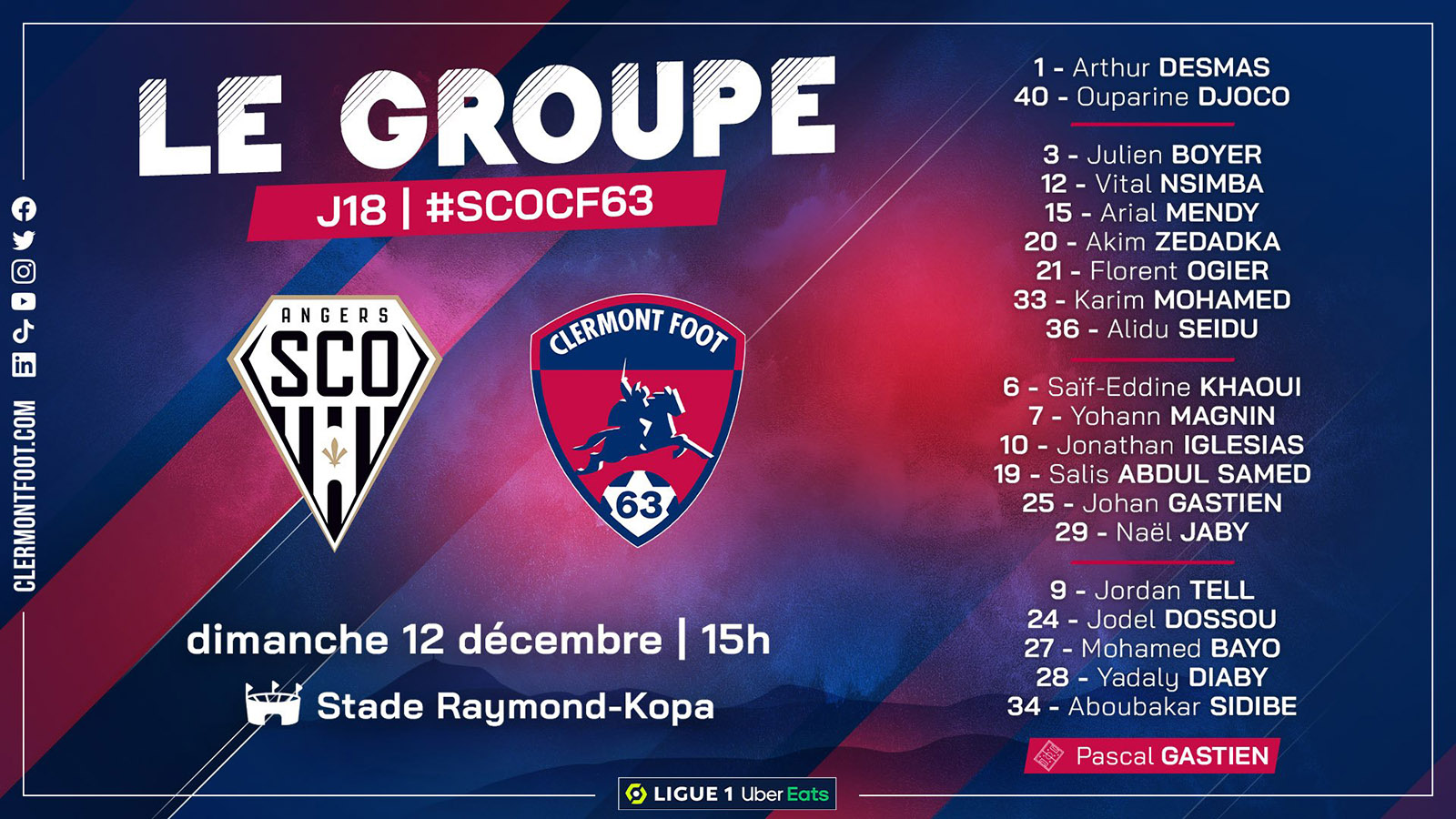 Parmi les milieux de terrain du SCO, cette rencontre aura forcément une saveur particulière pour Mathias Pereira-Lage. Le natif de Clermont-Ferrand formé au CF63 a joué 122 matchs avec l’équipe professionnelle auvergnate entre 2016 et 2019, période durant laquelle il avait inscrit 22 buts avant d’aller découvrir la Ligue 1 Uber Eats avec Angers. Retrouvailles à prévoir aussi pour Pierrick Capelle, qui avait signé son premier contrat professionnel au Clermont Foot sous les ordres de Régis Brouard. Enfin, Paul Bernardoni, qui a marqué les esprits à Clermont, sera absent. Tout juste remis d’une infection pulmonaire, il reprendra avec l’équipe réserve.