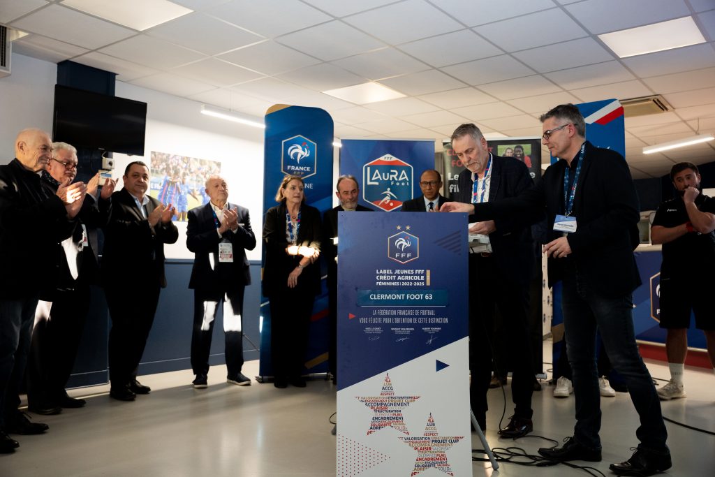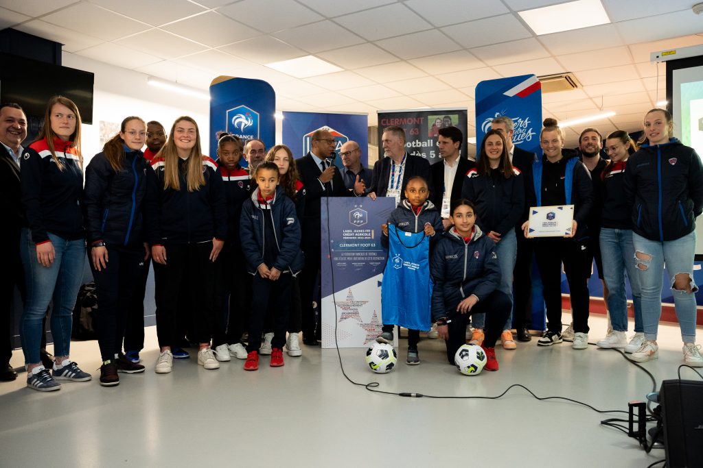 Vendredi 7 avril 2023, à l’occasion du match de l’équipe de France Féminine face à la Colombie, le Clermont Foot 63 a reçu des mains de la Fédération Française de Football, son Label de Formation Féminin, niveau or.