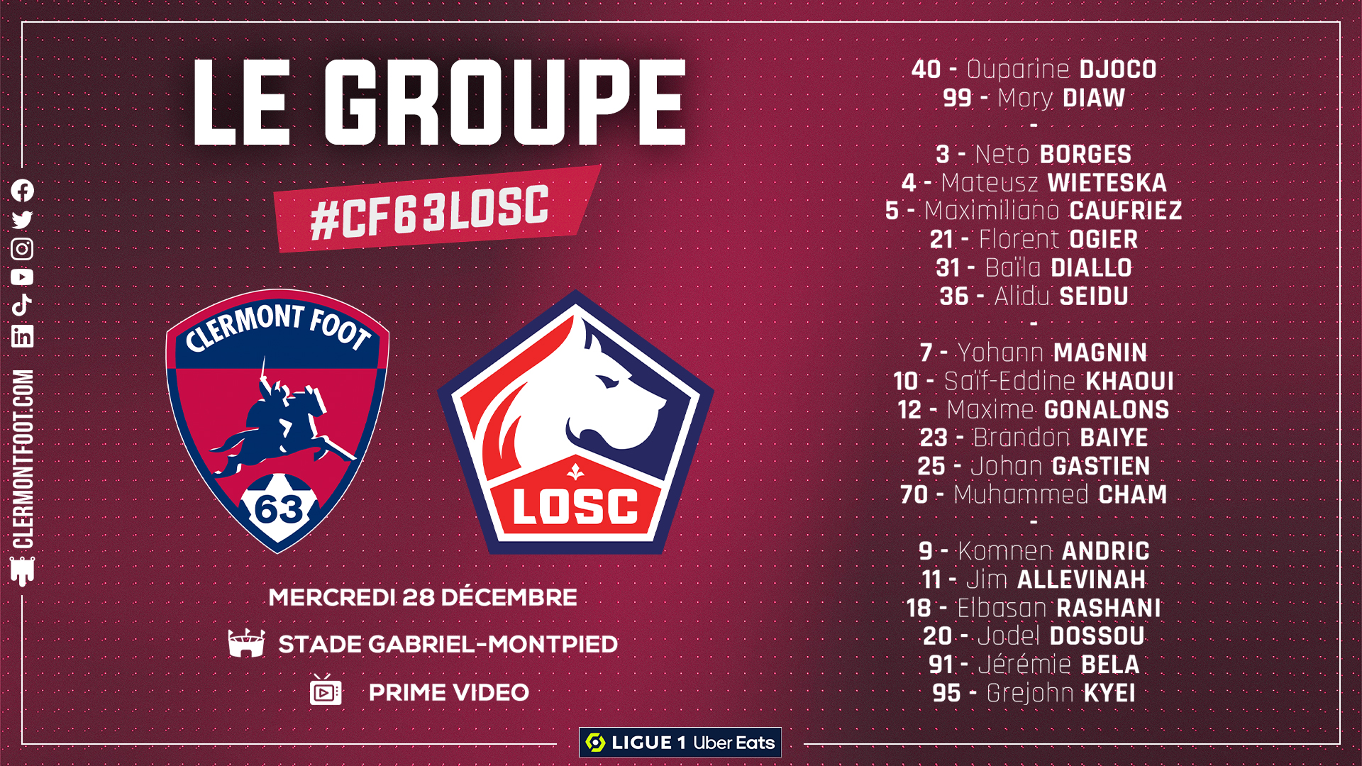 Pour cette reprise, Pascal Gastien a pu compter sur la quasi-totalité de ses troupes (seul Souleymane Cissé est blessé) même si Mehdi Zeffane, de retour de blessure, « est encore trop court » comme l’a indiqué le technicien clermontois. En face, Paulo Fonseca devrait finalement pouvoir s’appuyer sur André et Fonte mais devra se passer d’Ounas (grippe), Yoro (cheville), Gudmundsson (reprise), Bamba et Baleba (suspendus).