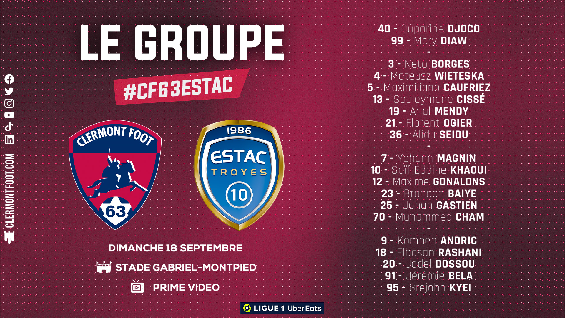 À Troyes, Bruno Irles et son groupe ont pu profiter de neuf jours de récupération entre le match contre Lens et celui à Clermont. Un repos bienvenu qui permet aux Aubois de se présenter au stade Gabriel-Montpied avec un effectif quasi-complet. Seul Thierno Baldé, malade, est absent du groupe.