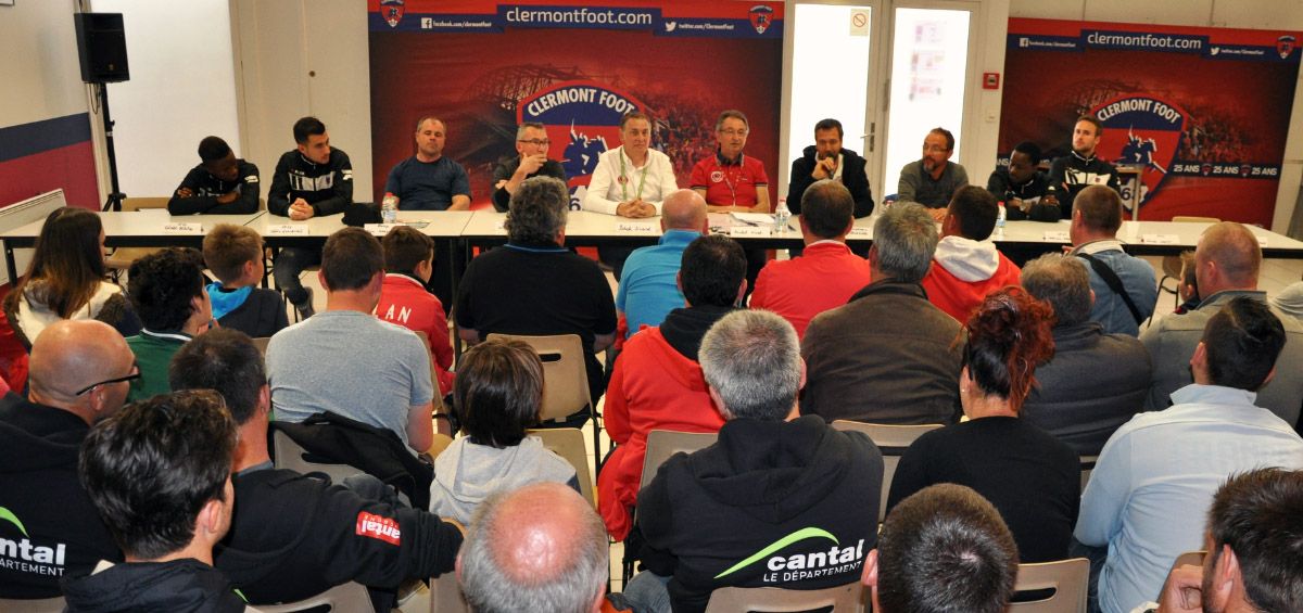En introduction, en souhaitant la bienvenue aux 75 participants des quatre clubs, Michel Huet, Vice Président de l'Association du Clermont Foot 63 et chargé de l'animation des Clubs Partenaires, a laissé la parole à Patrick Sicard, Président, qui n'a pas manqué de rappeler l'importance de cette convention paraphée conjointement par les deux clubs en insistant sur les valeurs que le football amateur doit véhiculer sur et en dehors des terrains et sur le dévouement à toute épreuve des bénévoles qui composent tous ces clubs.
