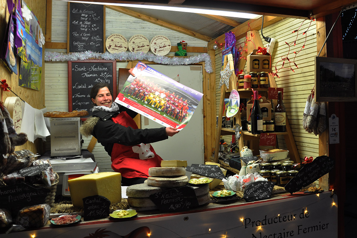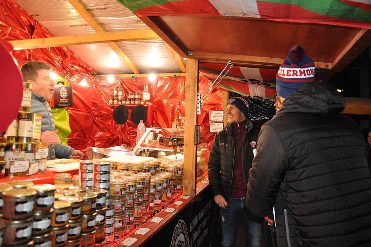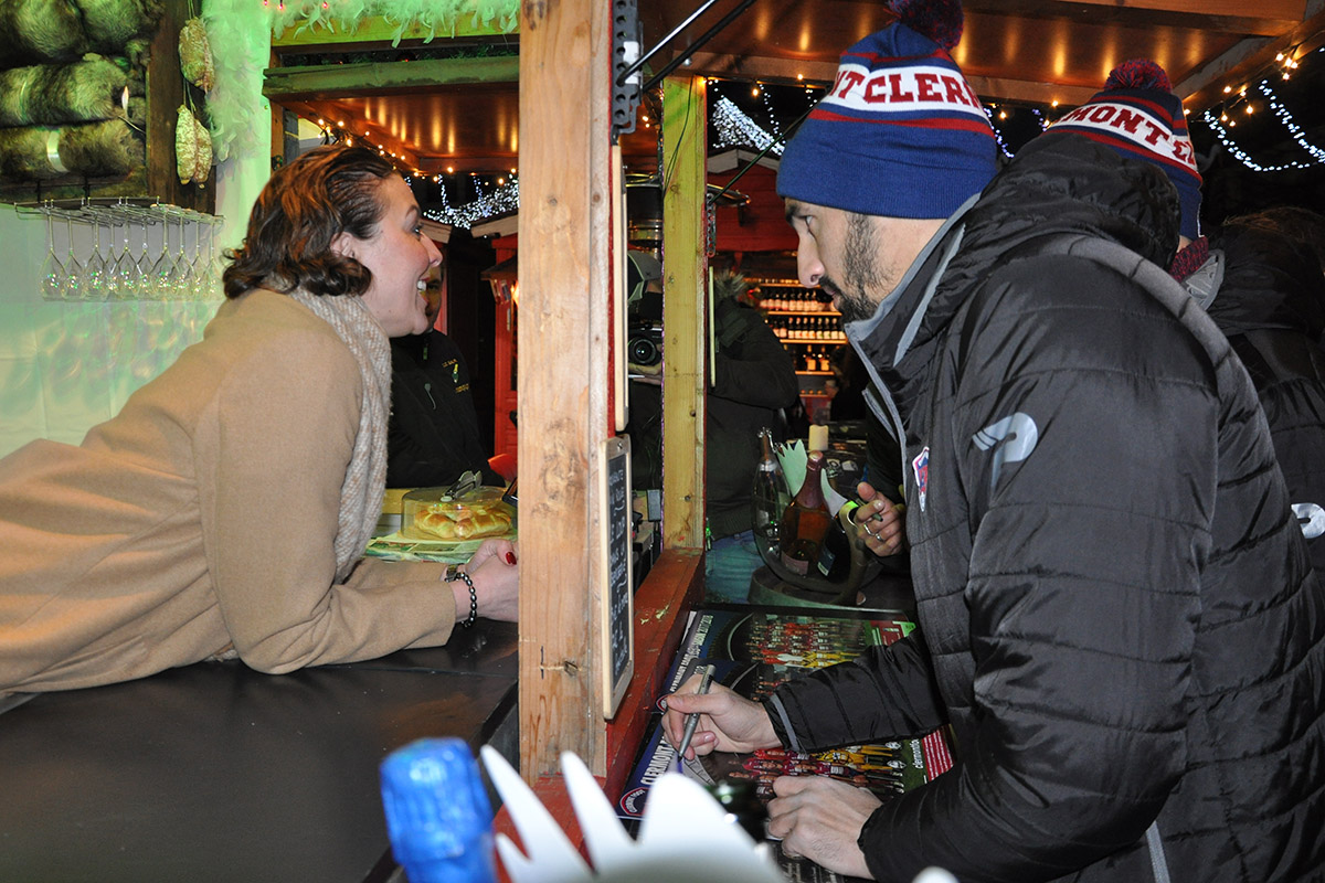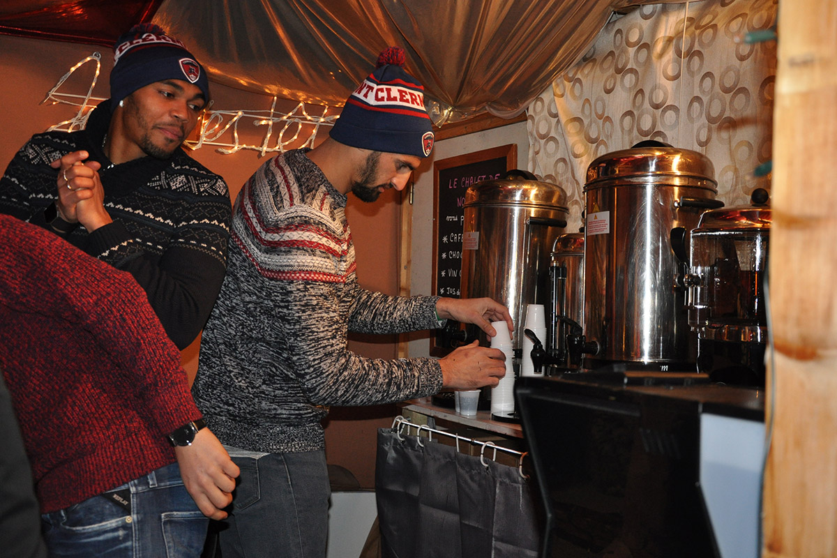 Après avoir fait un tour du Marché pour saluer les différents exposants, les trois joueurs professionnels ont ensuite investi un stand de vin chaud, afin d'assurer le service et d'offrir le verre de l'amitié aux supporters présents !