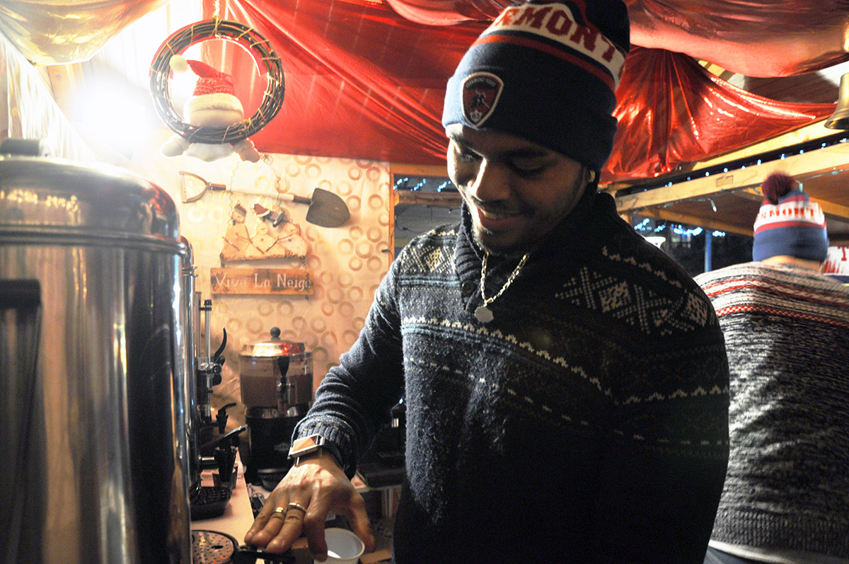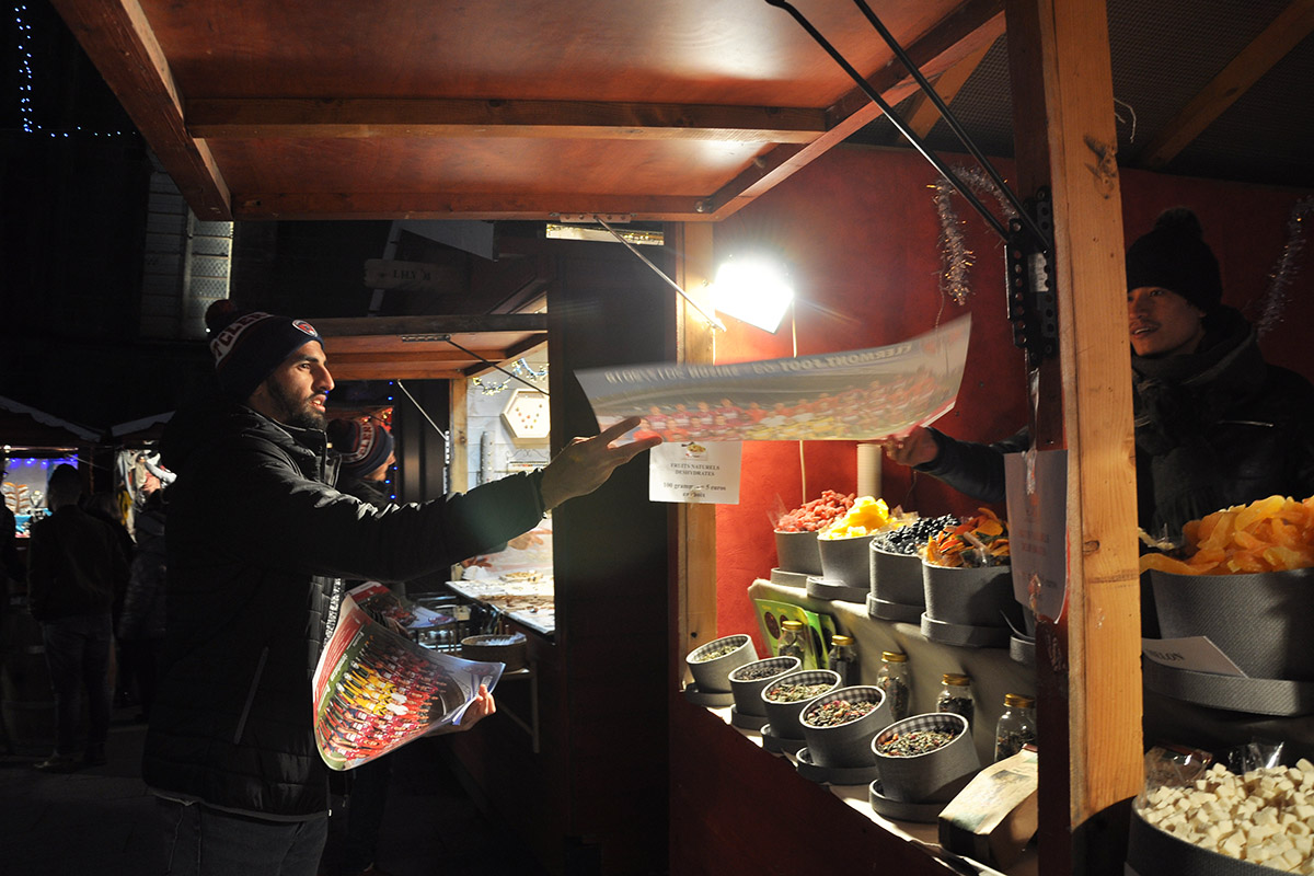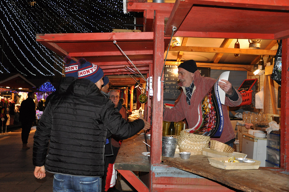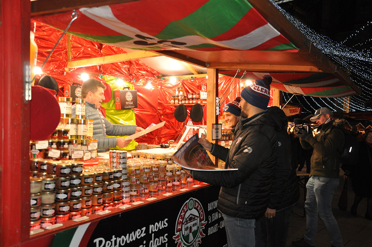 Après avoir fait un tour du Marché pour saluer les différents exposants, les trois joueurs professionnels ont ensuite investi un stand de vin chaud, afin d'assurer le service et d'offrir le verre de l'amitié aux supporters présents !