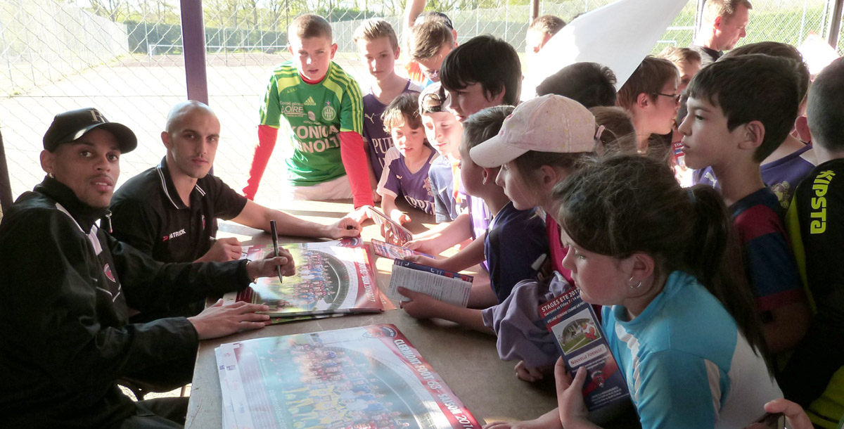Patrick Sicard et Michel Huet, respectivement président et vice-président de l'Association CF 63 accompagnés de Thierry Coutard et Alexandre Antunes (éducateur) ont été chaleureusement accueillis mercredi après-midi par Philippe Door, président du club de Vezezoux et Didier Robert, maire de la commune en présence d'une centaine d'enfants, de parents, dirigeants et bénévoles.