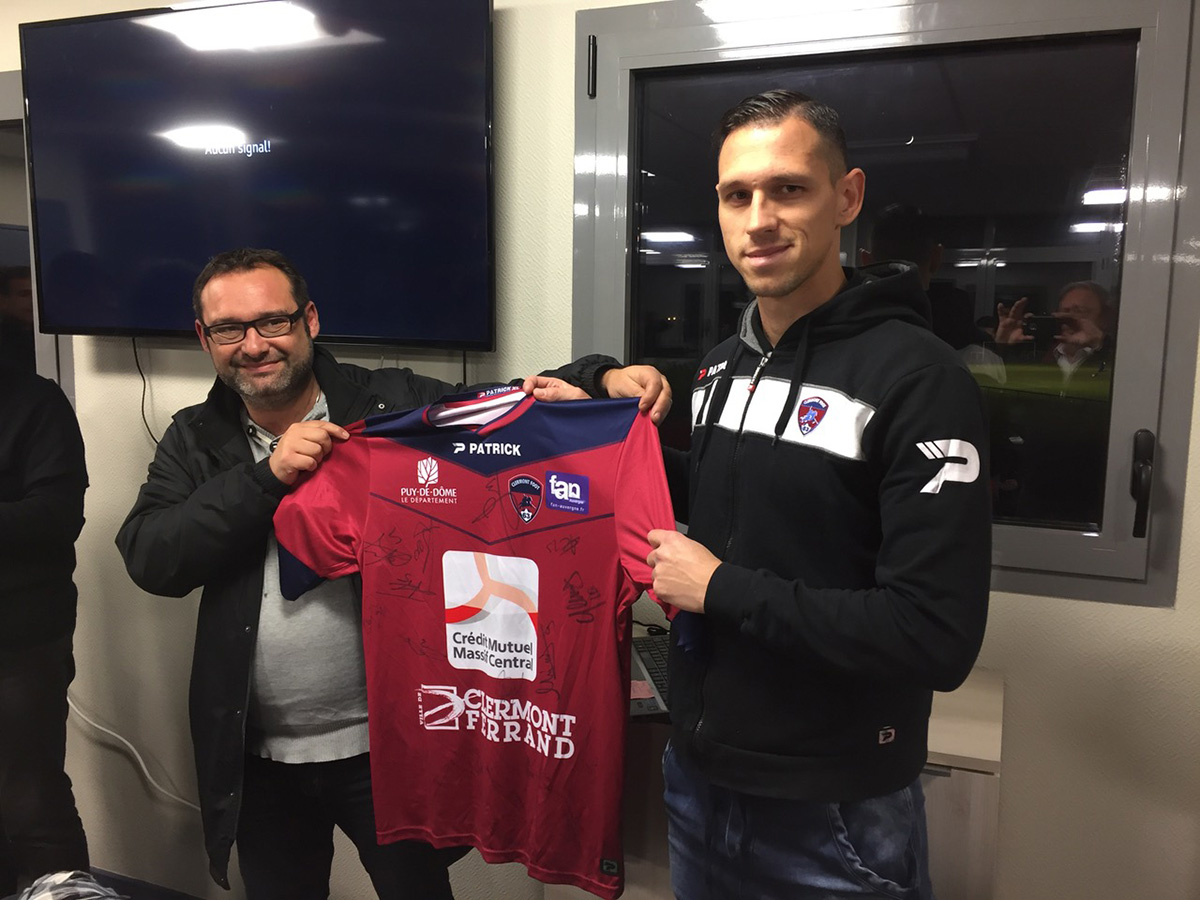 L'autre coupe, écharpes et le maillot dédicacé pour Domérat a été remis par Martin Kavdansky, joueur de l'effectif professionnel.