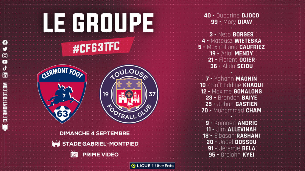 Pour ce troisième match en sept jours, le Clermont Foot 63 reçoit Toulouse, ce dimanche à 15 heures. De retour sur leur pelouse après deux déplacements infructueux, les joueurs de Pascal Gastien auront à cœur de s’imposer afin de reprendre leur marche en avant lors de cette 6e journée de Ligue 1 Uber Eats.