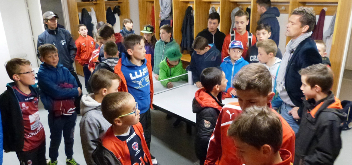 Puis direction les installations du groupe pro, des couloirs du stade en passant par la salle de presse, puis la salle de soins et ensuite les vestiaires visiteurs pour terminer dans la salle de musculation où les enfants ont pu assister à une remise en forme d’un joueur.