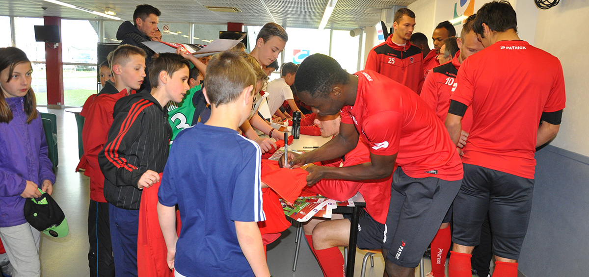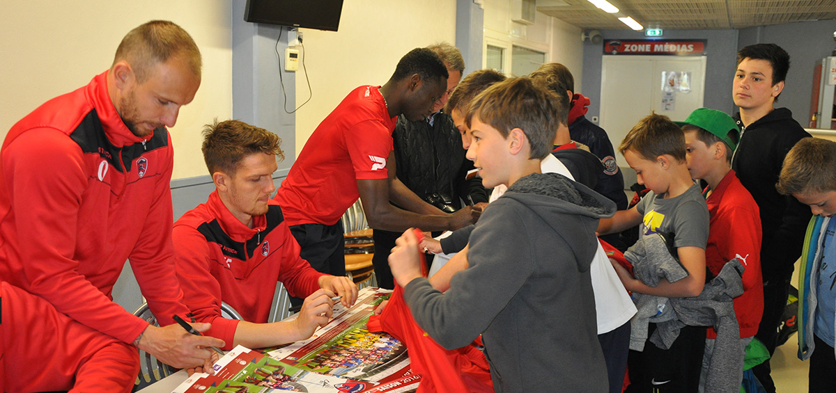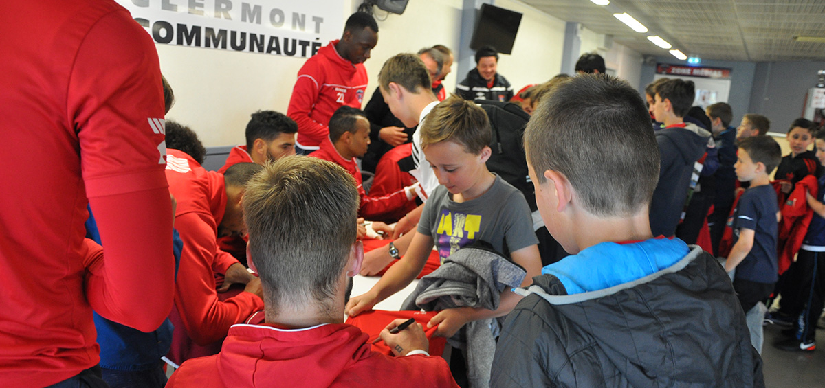 Il était déjà 10h30 et l’heure était venue d’assister à l’entrainement du groupe professionnel durant plus de 30 minutes avant la tant attendue séance de dédicaces du groupe professionnel, la remise d’un maillot floqué « Fontaine » délivré par Thomas et la photo souvenir avec une grande partie des joueurs. Dédicaces auxquelles s’est pris au jeu Thierry Coutard, l’emblématique entraineur du CF 63 de 1997 (les enfants ayant questionné : « Y a-t-il des anciens joueurs qui sont encore au club ? »).