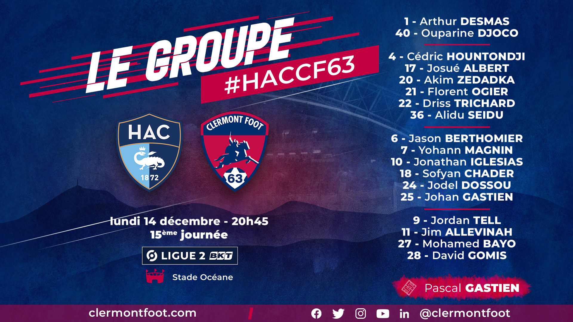 Découvrez le groupe convoqué par Pascal Gastien pour le déplacement au Havre, ce lundi à 20h45.