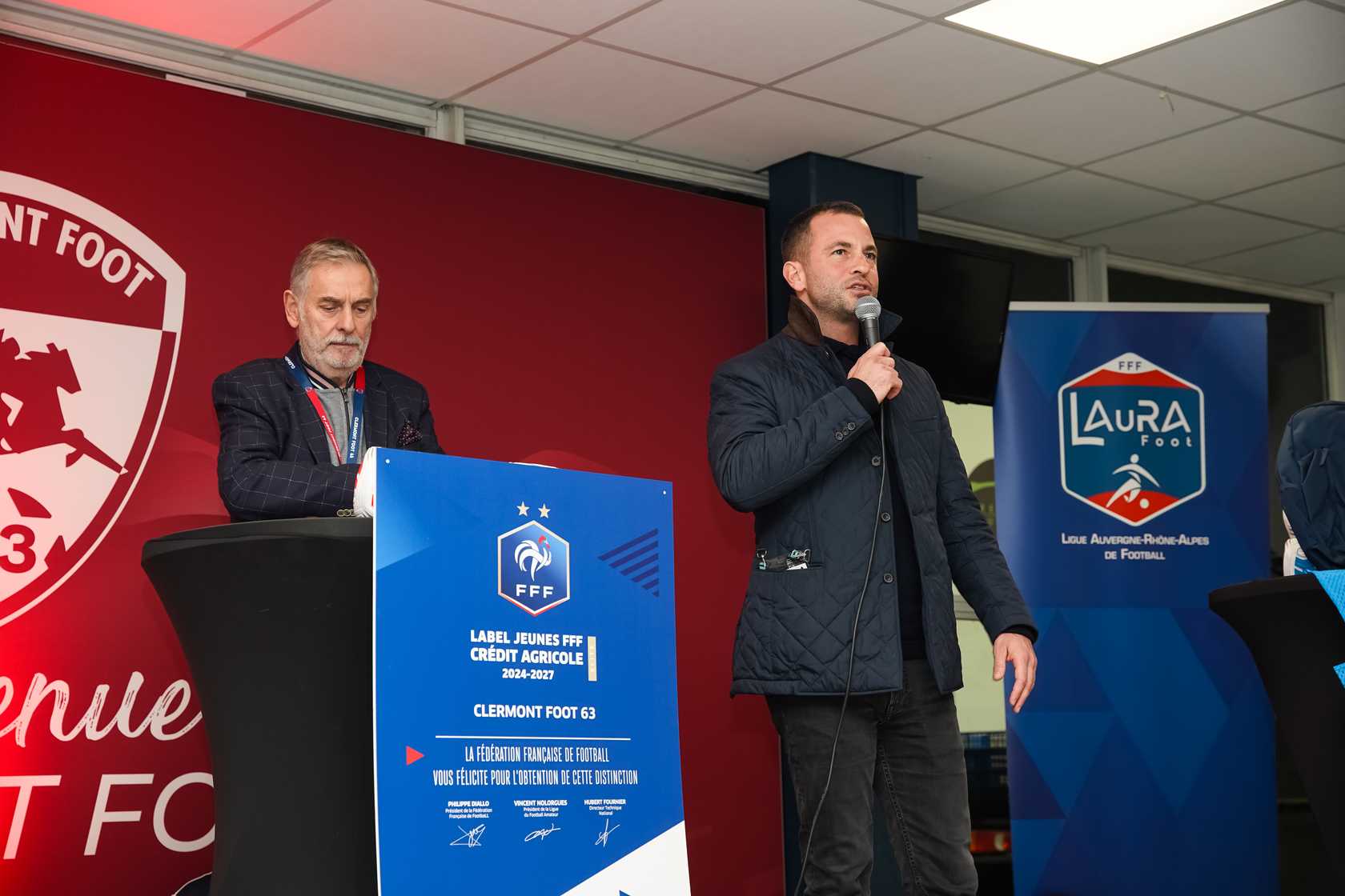 Une belle récompense pour le Clermont Foot 63. En présence de notre président Ahmet Schaefer, de Yannick Flavien (conseiller du Président), de Patrick Sicard, (Président de l’Association Clermont Foot 63) et de Roman Villette (responsable de l’école de foot), une délégation de la Ligue d’Auvergne Rhône-Alpes de Football a décerné à notre club le label Elite jeunes FFF pour une durée de 3 ans.