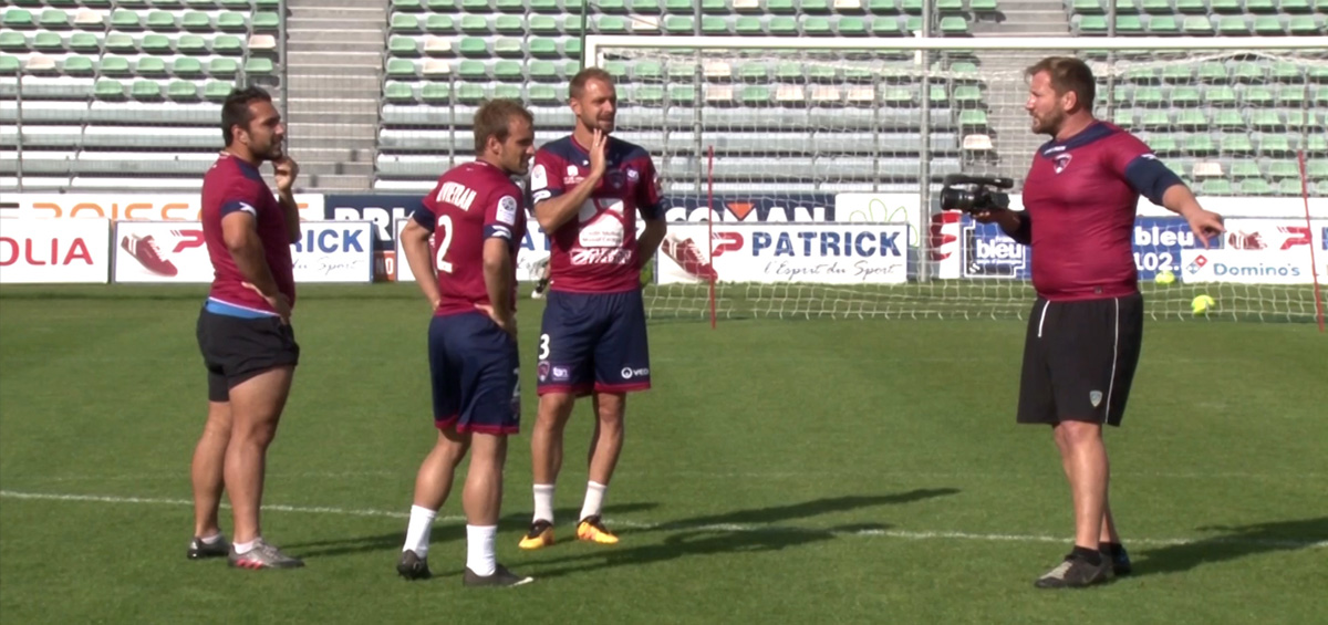 Cyriaque Rivieyran et Baptiste Martin les ont accueillis au stade Gabriel-Montpied pour leur concocter quelques défis footballistiques… Quand les rugbymen de l'ASM s'invitent au Clermont Foot, c'est chambrage, bonne humeur, glissades et fous rires garantis !