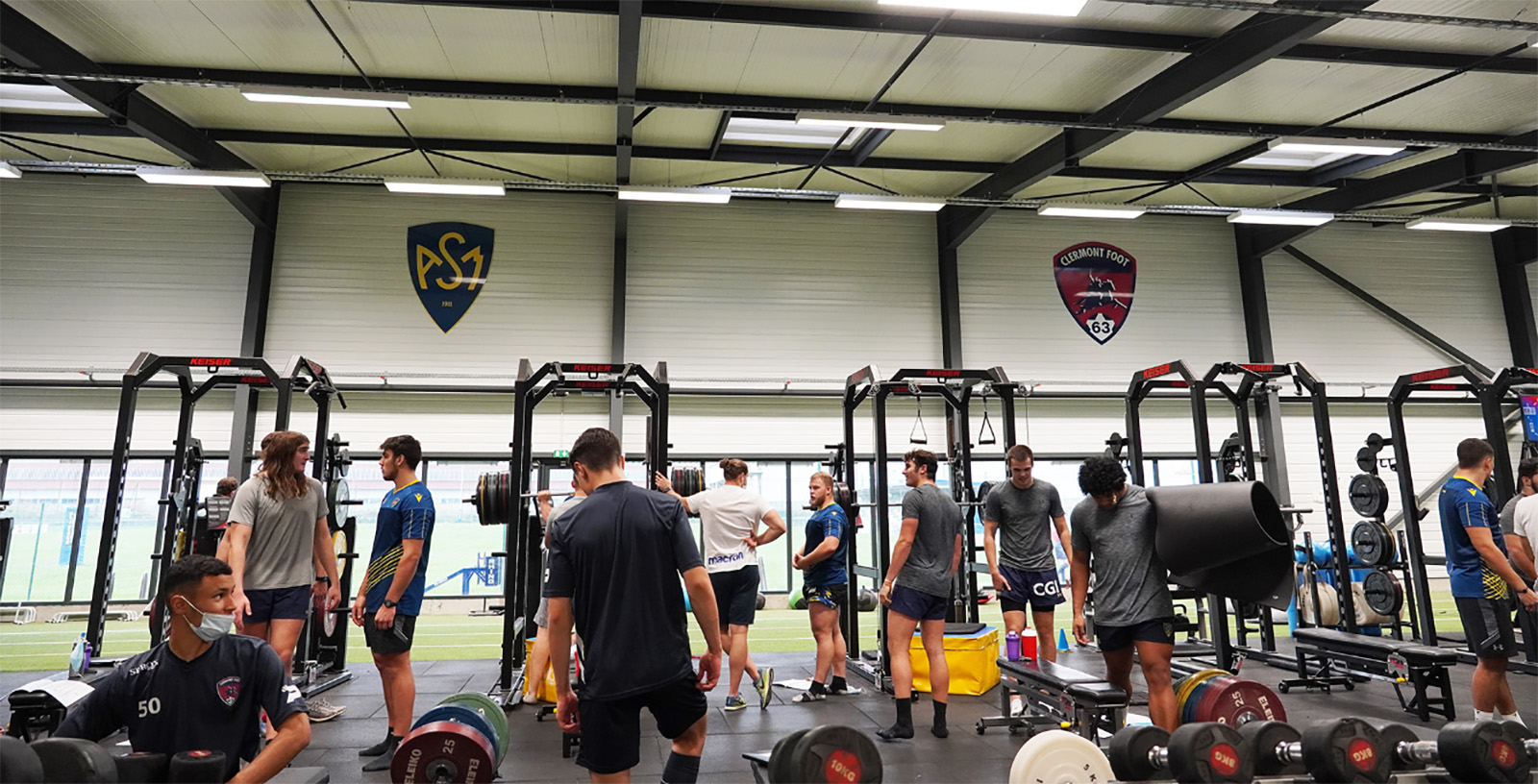 La salle de performance est un lieu propice aux échanges entre jeunes footballeurs et rugbymen du Clermont Foot 63 et de l’ASM