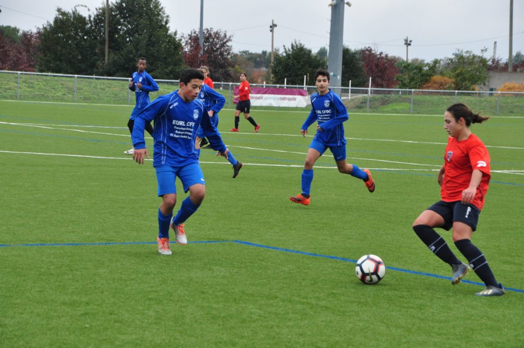 En effet, engagée en championnat masculin départemental à 11 c’est un réel avantage de pouvoir proposer sur 2 années d’âge l’apprentissage sur grand terrain. La progression sur les 4 aspects (technique , tactique, physique et mental) se fait de manière conséquente et permet le passage en U18F avec des acquis non négligeables. A la tête de cette équipe depuis bientôt 2 ans, c’est un réel plaisir de pouvoir encadrer ces joueuses.