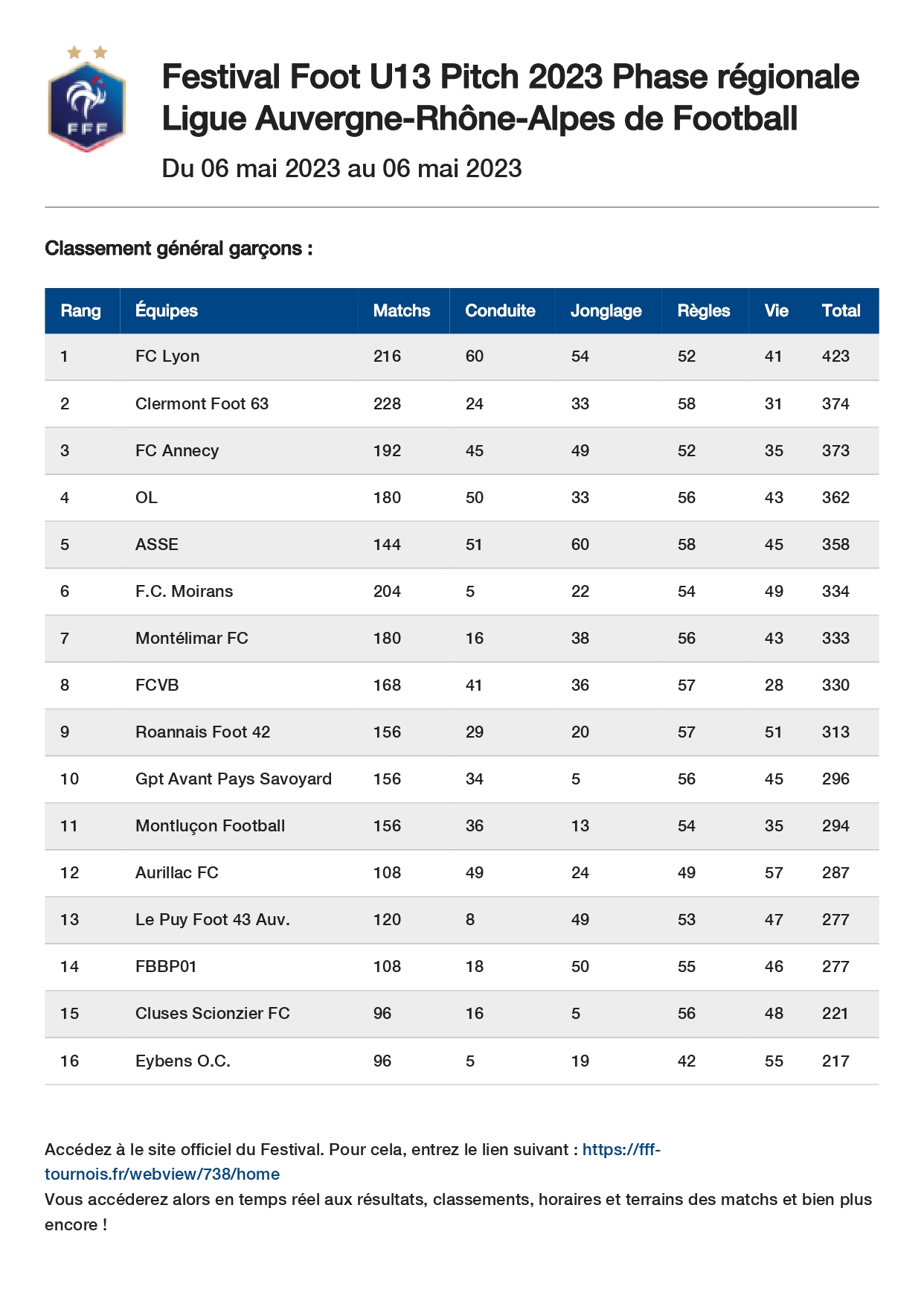 Nous avons fièrement représenté notre club en terminant deuxième de cette finale derrière le FC Lyon qui se qualifie pour la finale nationale (Bravo à eux !). Nous terminons devant l’OL et l’ASSE en réussissant un parcours sportif de qualité. Trois victoires et deux matchs nuls avec un très bon contenu proposé sur la journée.