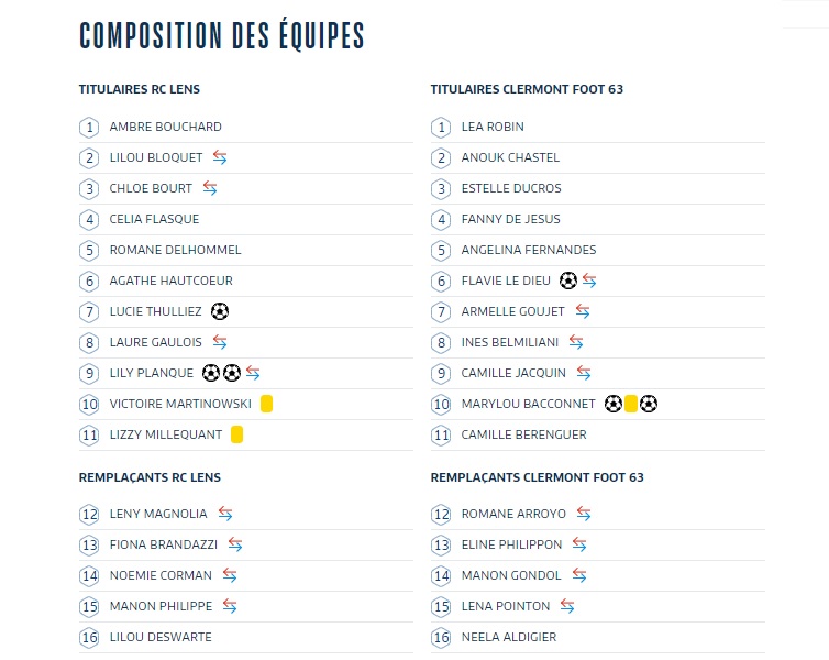 On subit la maîtrise adverse sur le début de rencontre, mais défendons relativement bien. Après une première occasion sur une récupération haute, nous marquons dès la 6e minute sur un ballon repris dans la surface par Marylou Bacconnet sur un coup franc lointain de Camille Bérenguer. Mais Lens nous confisque le ballon et nous attaque fort sur les côtés. L’égalisation est logique à la demi-heure de jeu sur un centre de notre gauche repris par la numéro 9 du RC Lens.