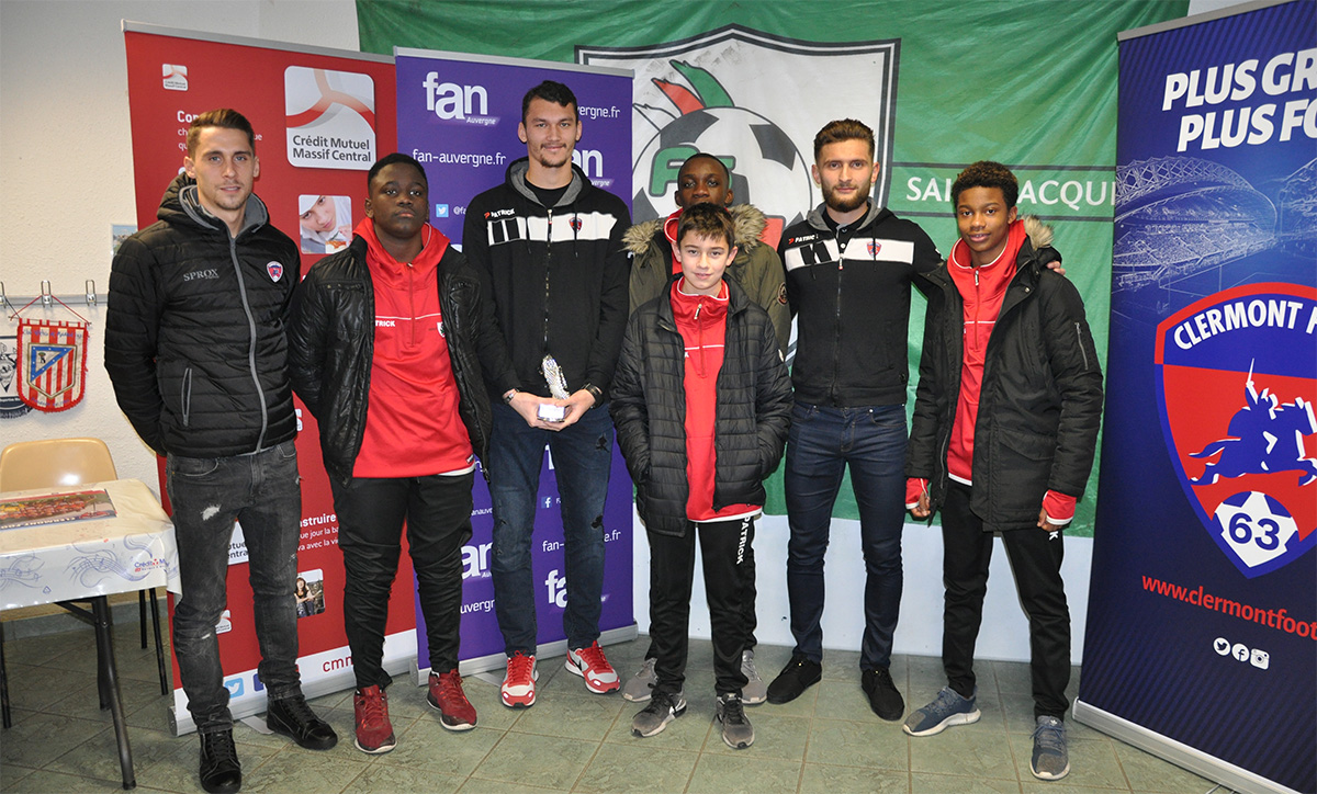 Le club de l'AS Clermont Saint-Jacques accueillait ce mardi 9 janvier la remise du Trophée du joueur du mois de décembre du Clermont Foot 63, en partenariat avec le Crédit Mutuel Massif Central. La soirée s'est déroulée en présence de Benoit Boullé, Directeur Général du Crédit Mutuel Massif Central,  Frédéric Bertram, Directeur de la Caissse CMMC de Neuf Soleils, Georges Guillaumin, vice-président de l'AS Clermont St-Jacques, Claude Michy, Président de la SASP Clermont Foot 63 et Patrick Sicard, Président de l'Association Clermont Foot 63.